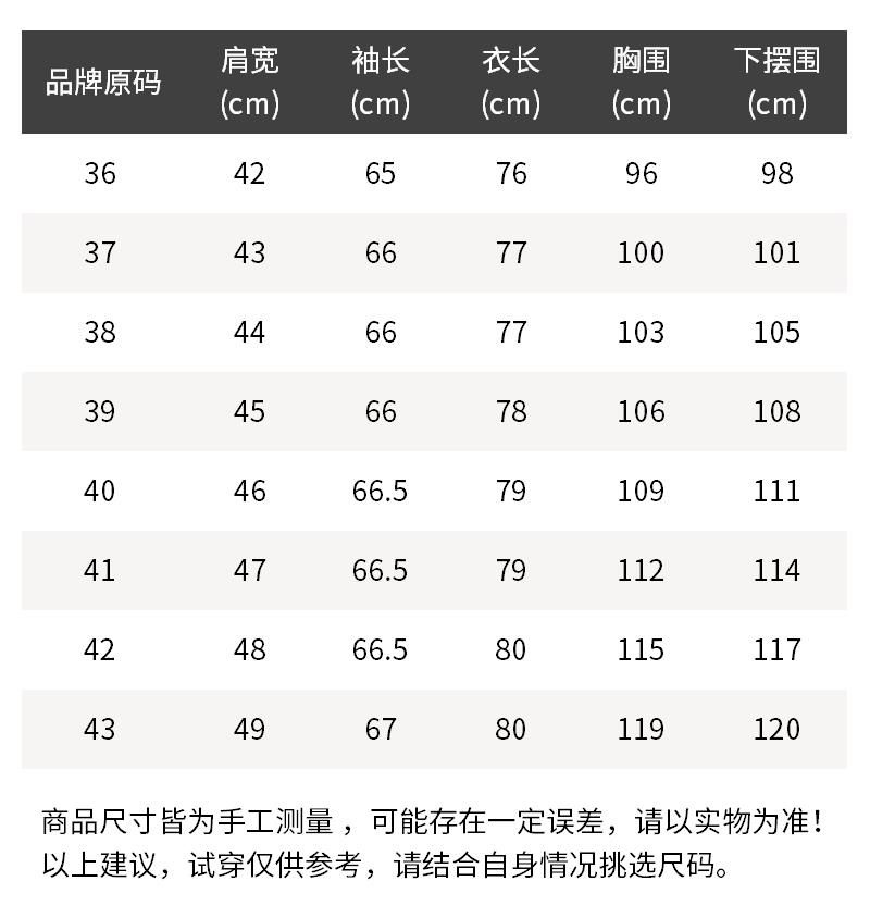 - 温馨提示:1.丢失包装及附件或拆除防损标签/吊牌时不予退换,敬请理解。2.批次不同,产地/细节有所不同,随机发货。3.所有尺寸皆为手工测量,存在1~3cm误差,请以实物为准!