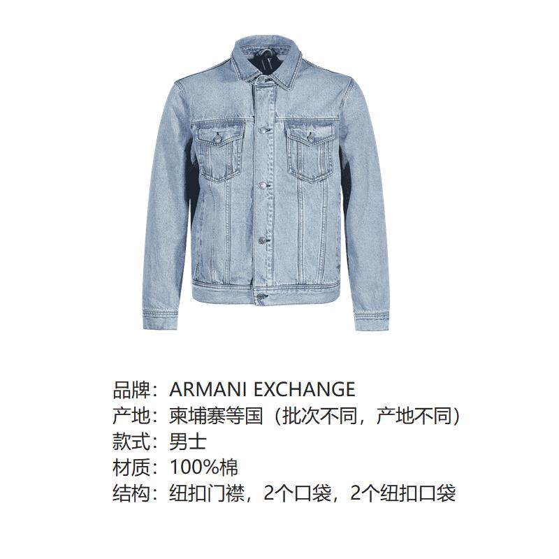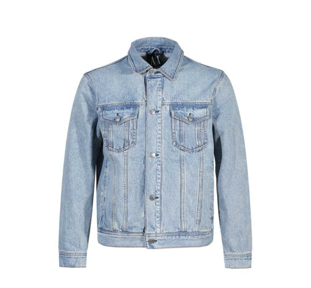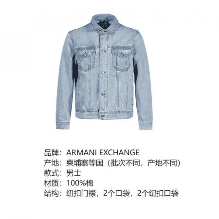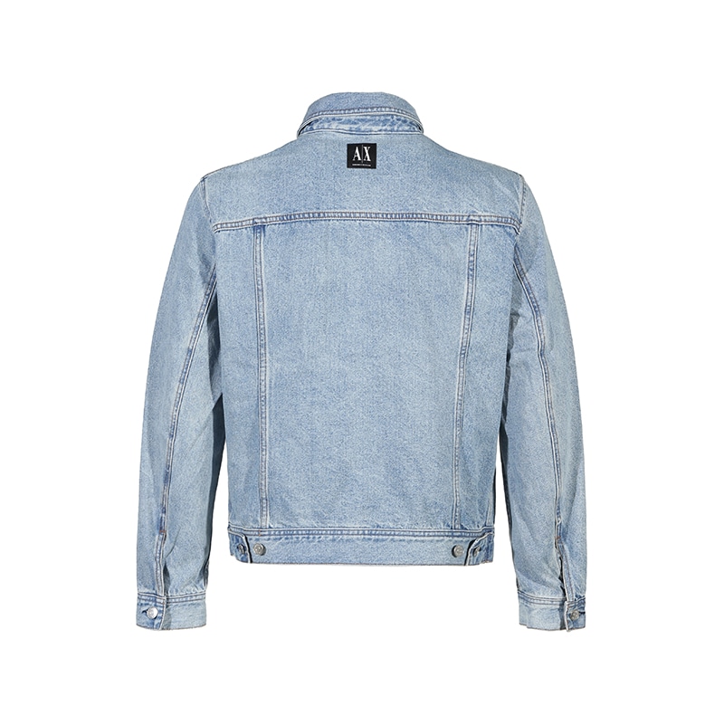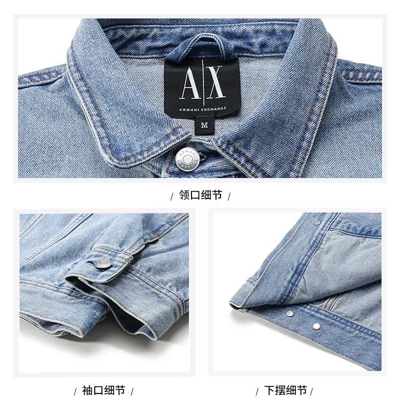 - 此款 ARMANI EXCHANGE 夹克采用质感挺括的全棉水洗牛仔面料,打造复古时髦外观,轻松穿出摩登街头感。短款翻领版型,搭配两个翻盖贴袋,上身干练有型,使其能轻松驾驭多种场合,更显都市型男魅力。