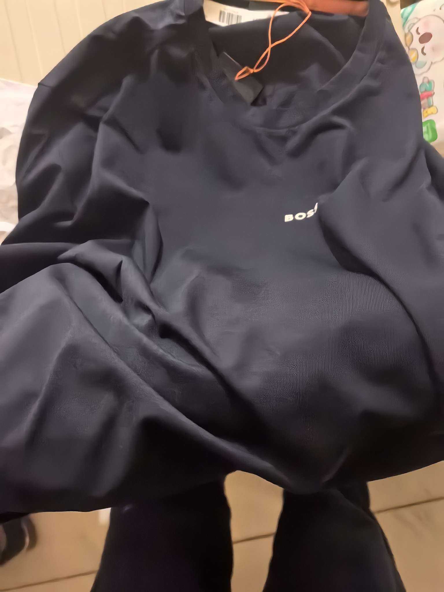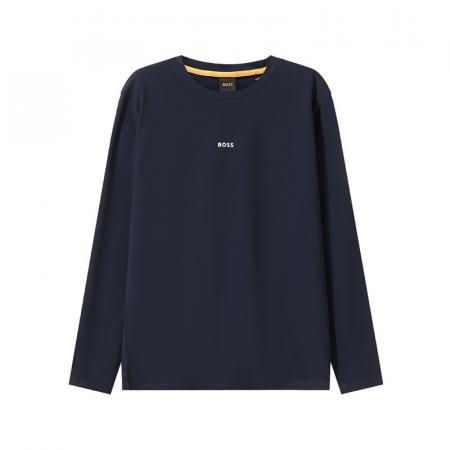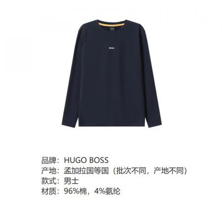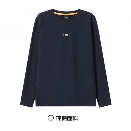自营Hugo Boss 雨果博斯 男士orange系列棉质深蓝色小徽标胶印圆领长袖T恤 50473286 404