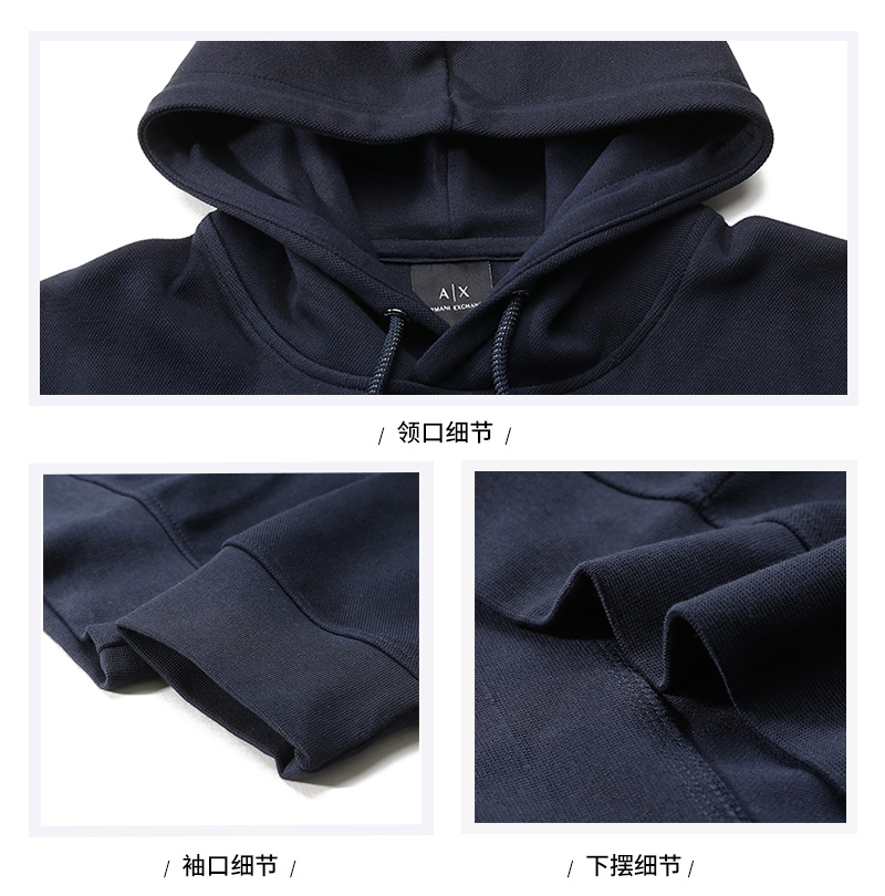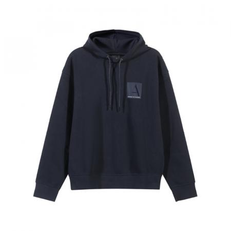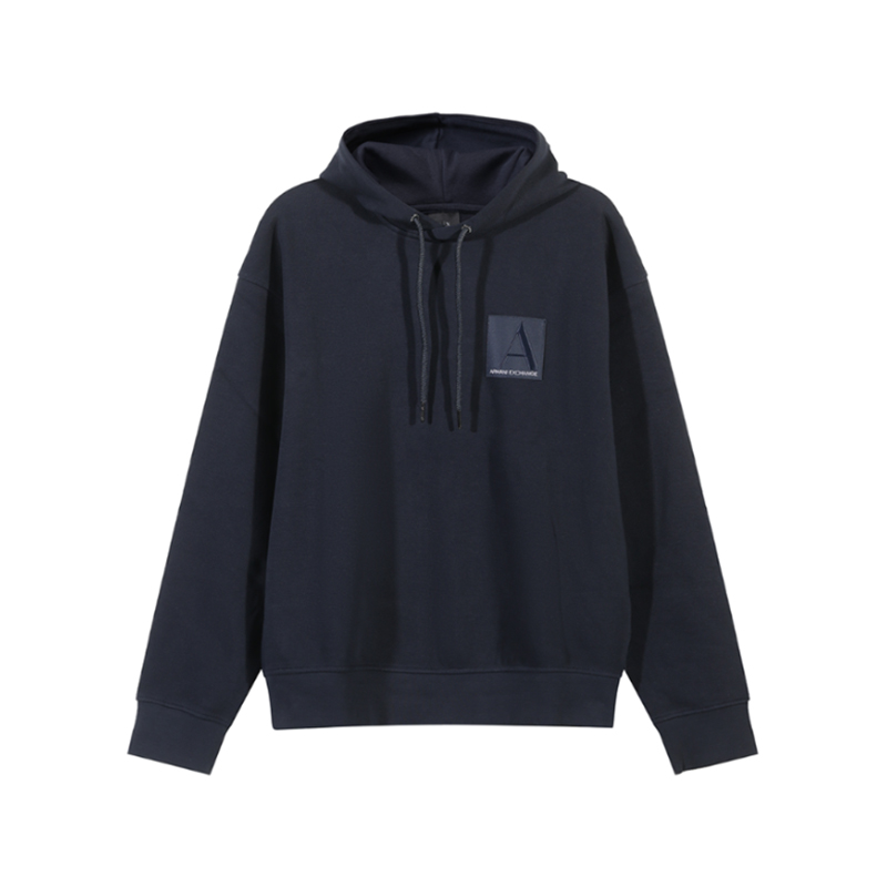 自营Armani Exchange 阿玛尼 新品 男士棉质海军蓝色LOGO贴片宽松款连帽卫衣运动衫 6DZMJB ZJNKZ 1510