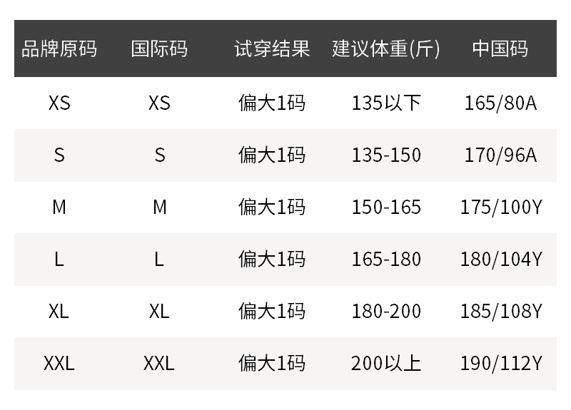 - 尺码说明