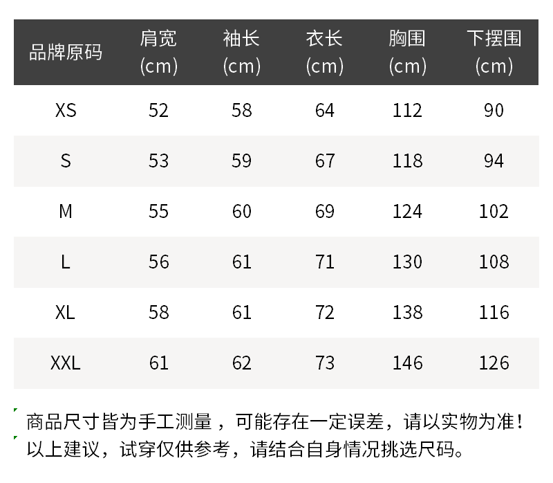 - 温馨提示:1.丢失包装及附件或拆除防损标签/吊牌时不予退换,敬请理解。2.批次不同,产地/细节有所不同,随机发货。3.所有尺寸皆为手工测量,存在1~3cm误差,请以实物为准!