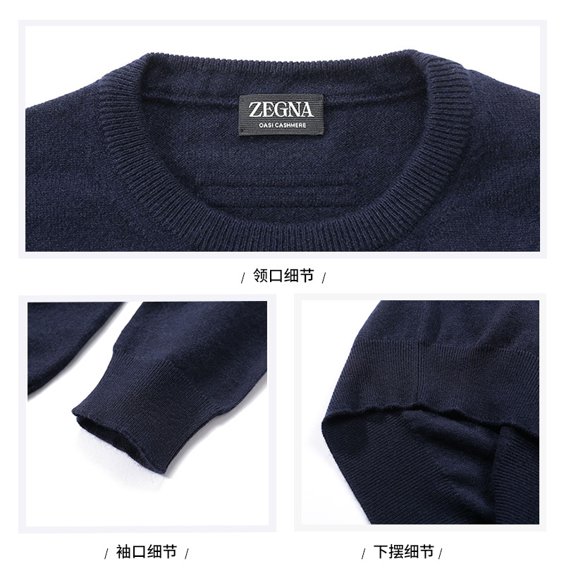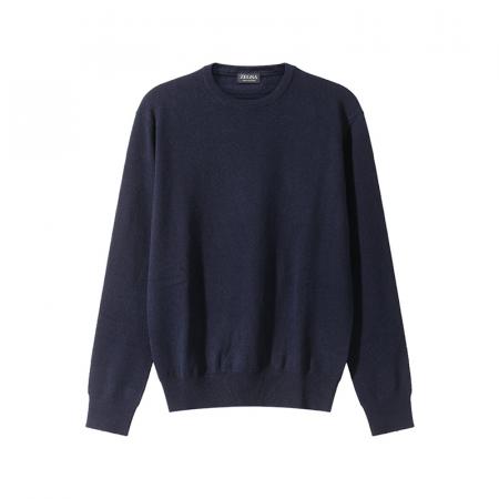 自营ZEGNA 杰尼亚【新品】 男士山羊绒海军蓝色OASI CASHMERE圆领长袖羊绒衫针织衫 E8K10 110 B98