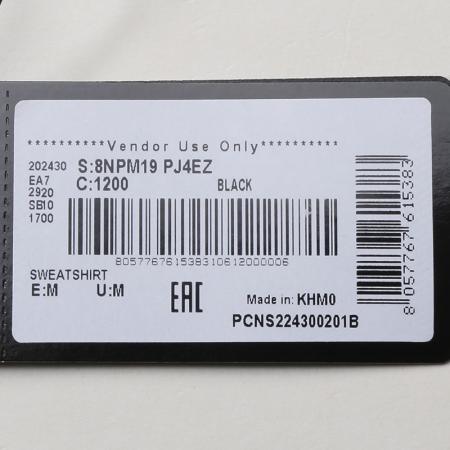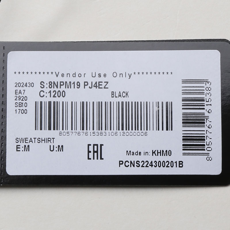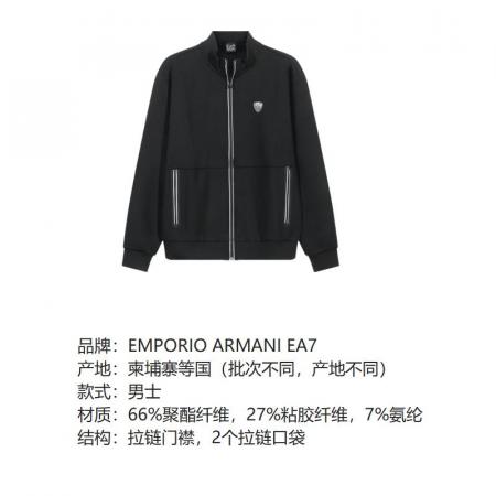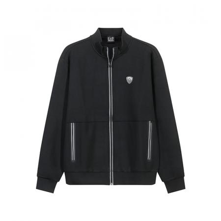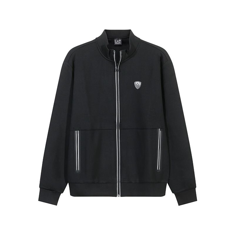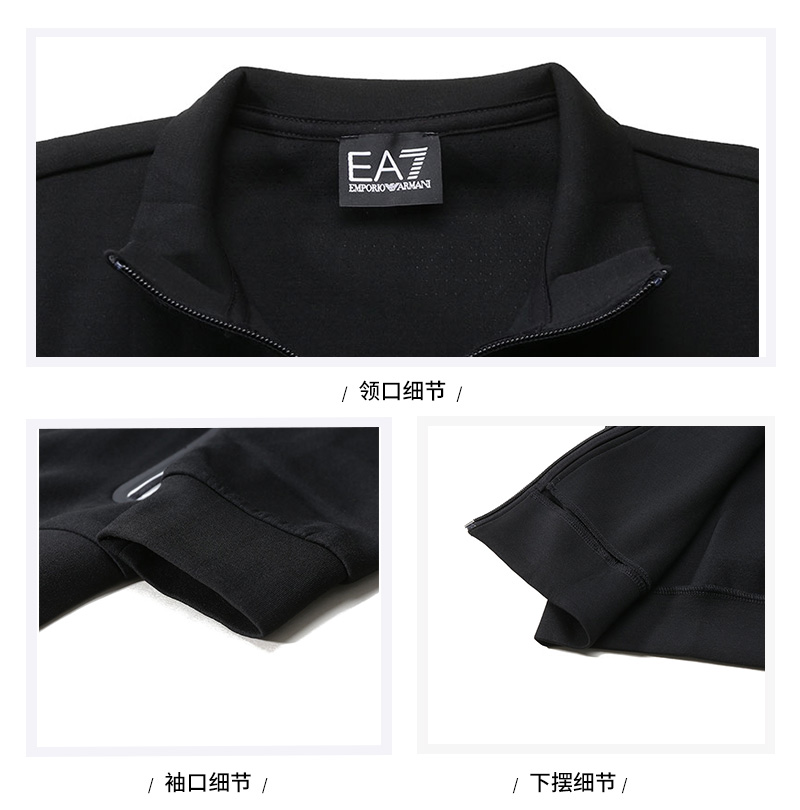 自营EA7 阿玛尼【新品】 男士黑色盾标贴片拉链卫衣开衫运动衫外套 8NPM19 PJ4EZ 1200