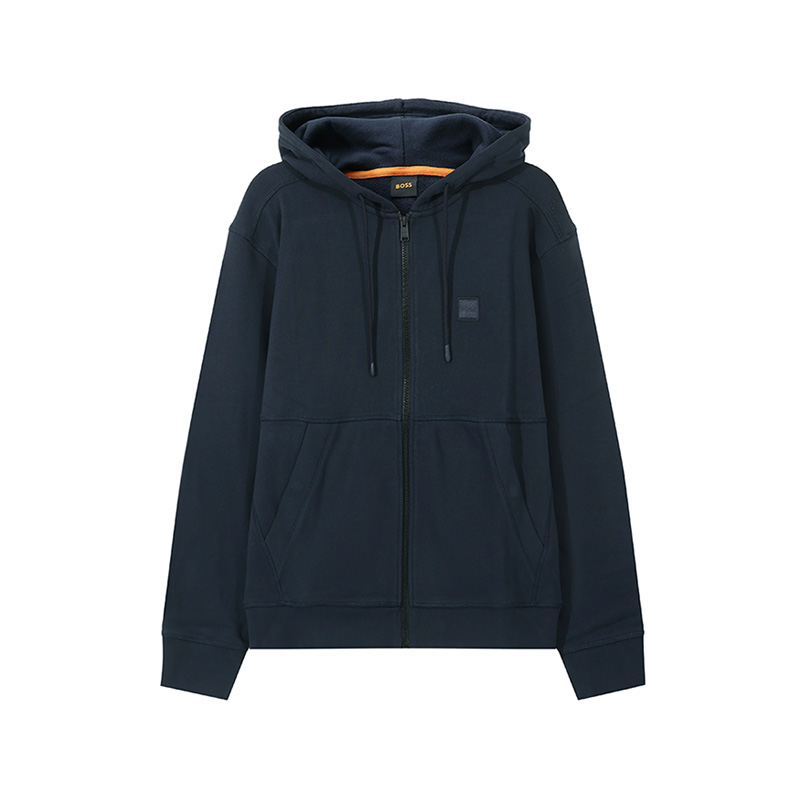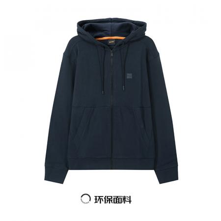 自营Hugo Boss 雨果博斯 【新品】 男士orange系列棉质海军蓝色小徽标贴饰环保面料连帽拉链卫衣开衫运动衫外套 50508578 404