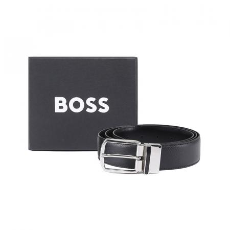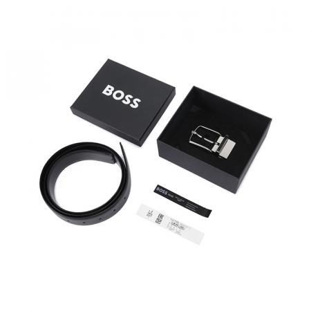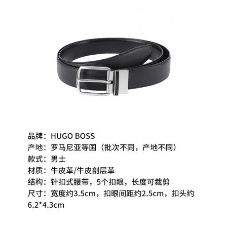 自营Hugo Boss 雨果博斯【新品】 男士black系列牛皮革/牛皮剖层革黑色可裁剪双面旋转皮带腰带3.5cm 50522883 001