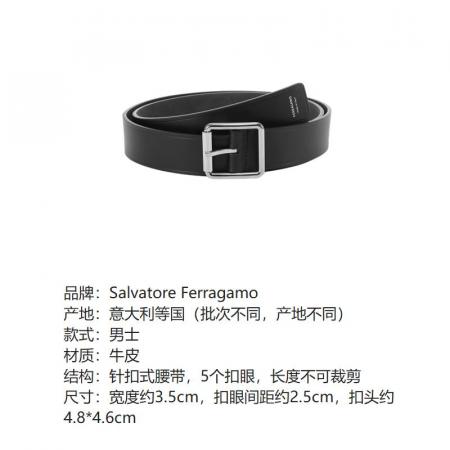 自营Ferragamo 菲拉格慕 新品 男士牛皮黑色不可裁剪皮带腰带3.5cm 670318 0770932