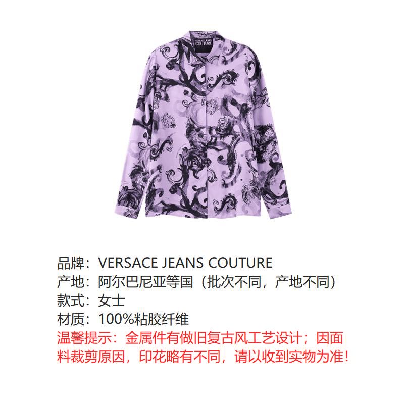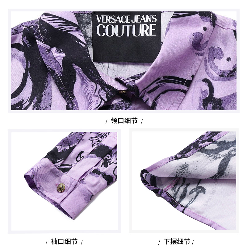 自营Versace Jeans Couture 范思哲 【新品】 女士浅紫色黑色通体巴洛克印花Watercolour Couture休闲长袖衬衫 76HAL201 NS407 320