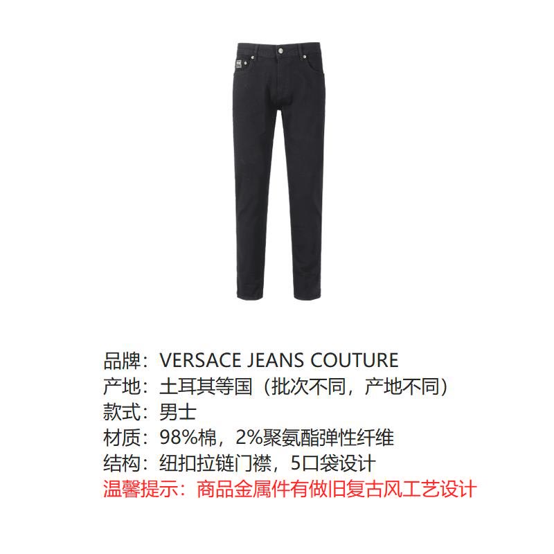 自营Versace Jeans Couture 范思哲 【新品】 男士棉质黑色修身版低腰牛仔裤长裤 76GAB5D0 CDW00 909