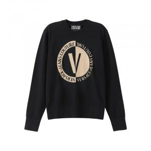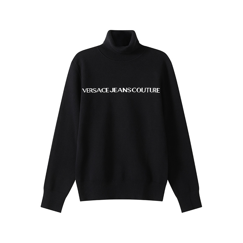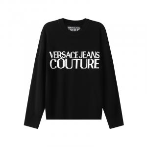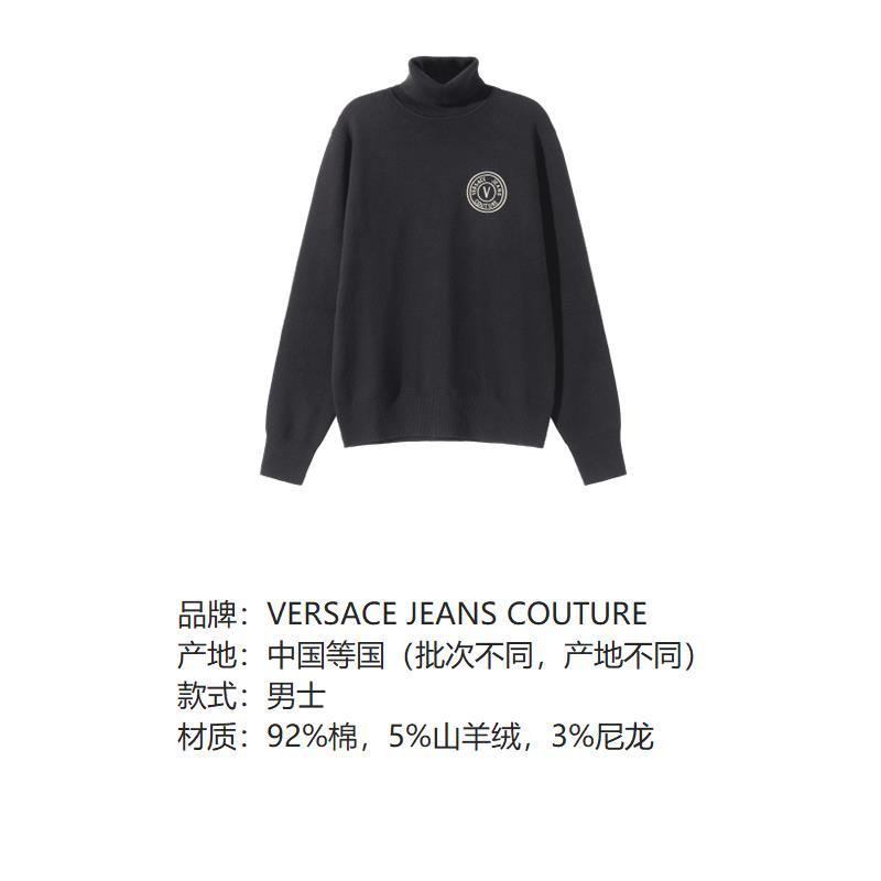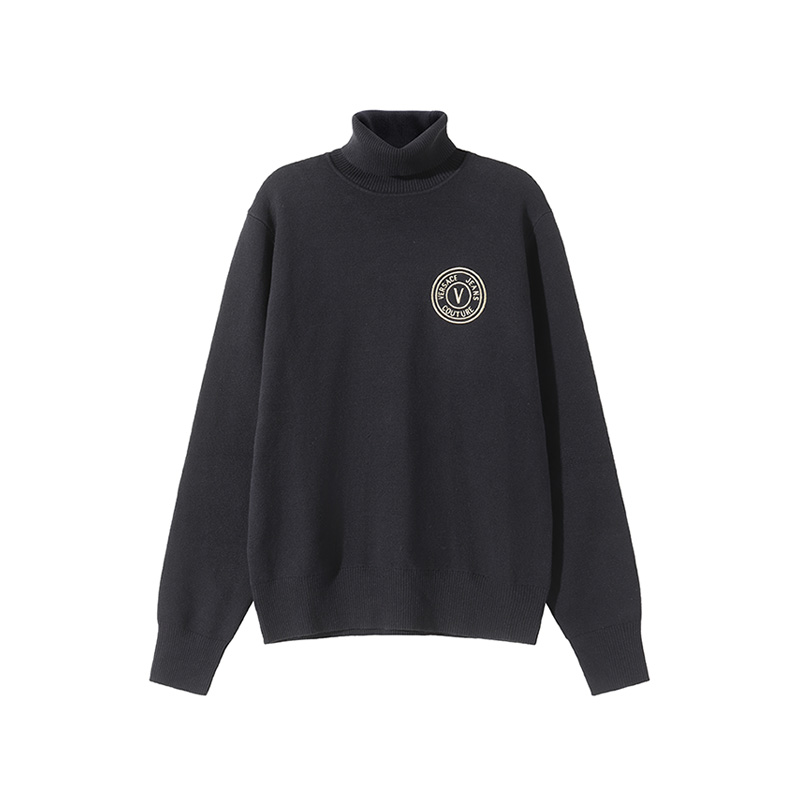 自营Versace Jeans Couture 范思哲【新品】 男士棉质黑色金色V字徽章刺绣高领长袖针织衫 77GAFM07 CMH41 G89