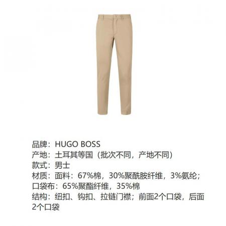 自营Hugo Boss 雨果博斯【新品】 男士black系列深米色棉质/混纺中腰休闲裤长裤 50524517 282