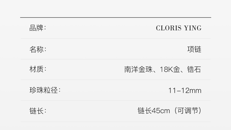 CLORIS 克劳瑞斯 CLORIS YING冰雪女王款18k金南洋金珠项链浓金海水珍珠女轻奢锁骨链