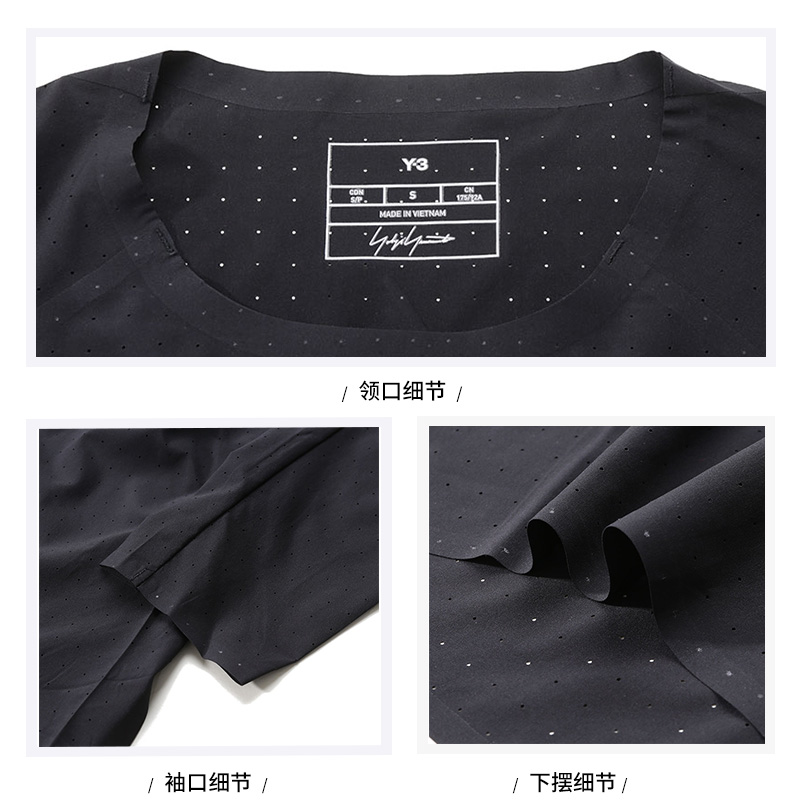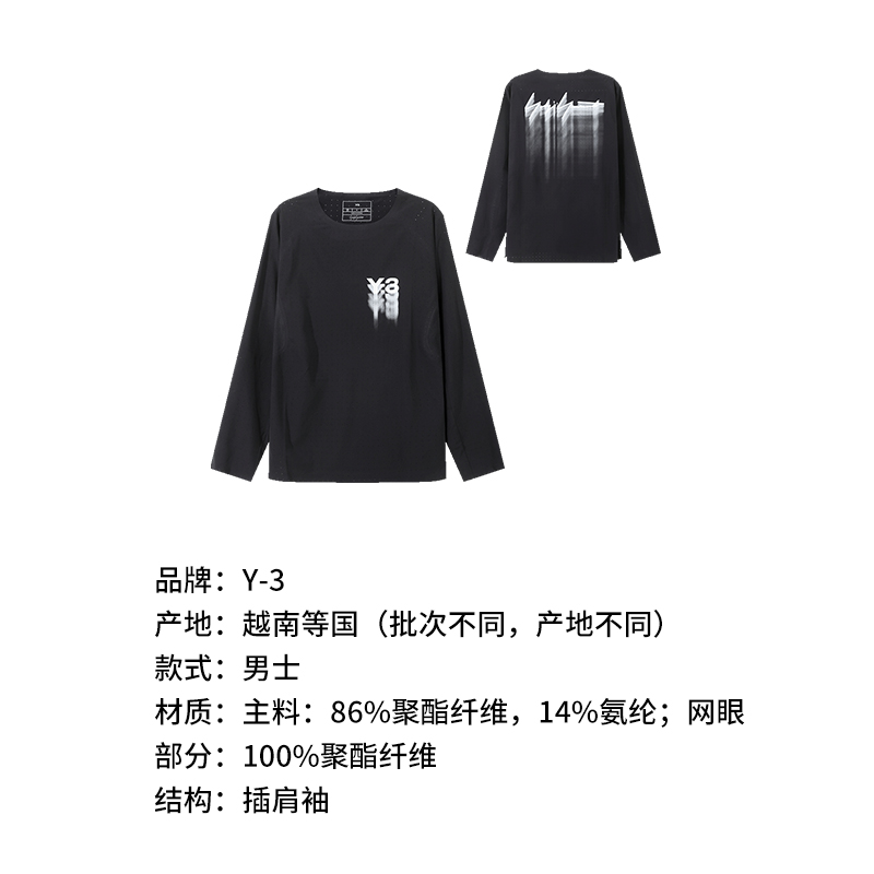 自营Y-3 【新品】 男士黑色LOGO胶印Running Long Sleeve Tee轻薄宽松运动网眼圆领长袖T恤 IN8744