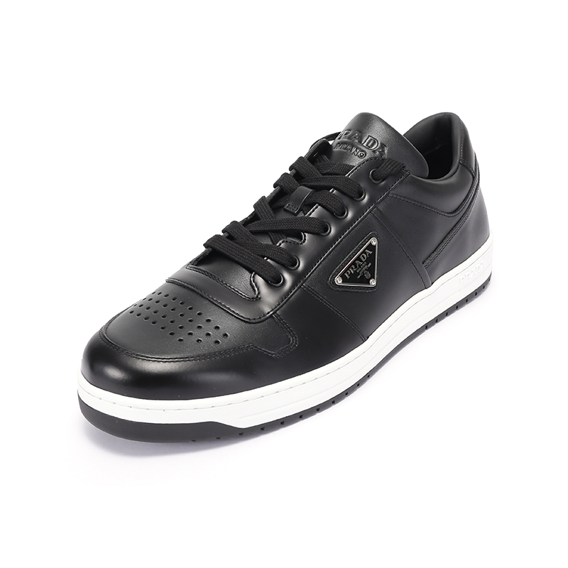 自营Prada 普拉达【新品】 男士皮革黑色三角形徽标Downtown系带板鞋休闲运动鞋 2EE364 3LJ6 F0002 F D001