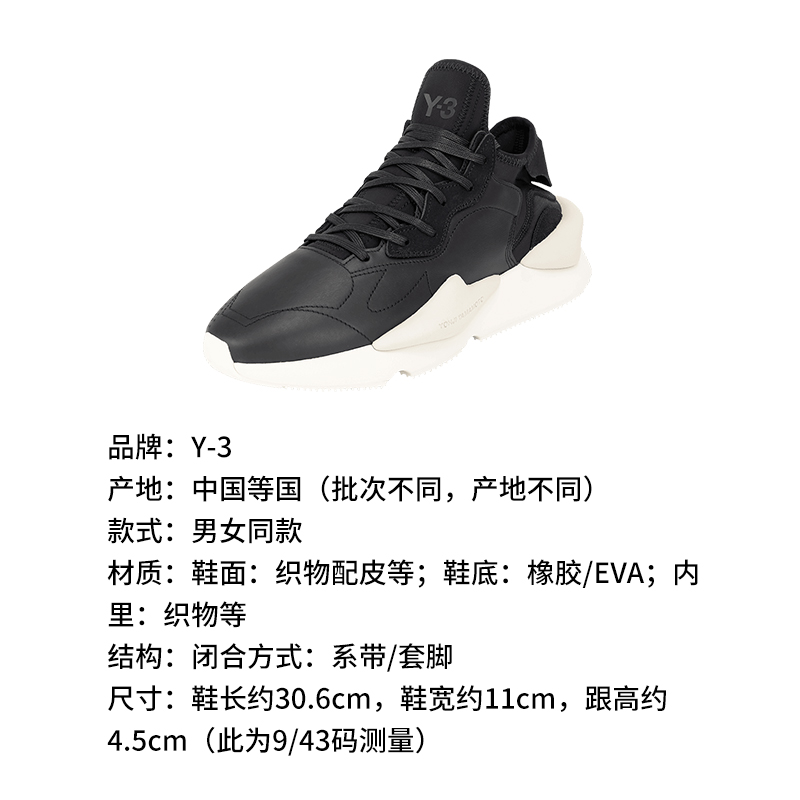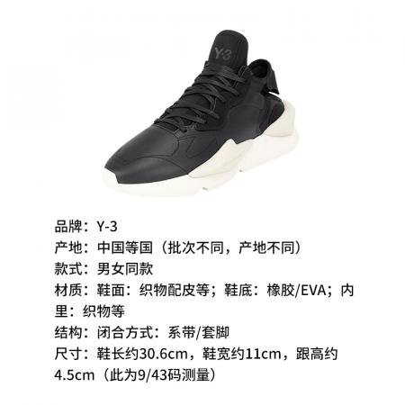 自营Y-3 【新品】 男士/女士中性款KAIWA系列黑色厚底系带休闲运动鞋 IG4055