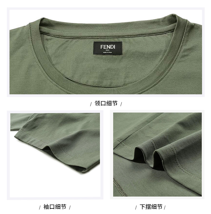 自营Fendi 芬迪 【新品】 男士棉质军绿色FF刺绣圆领短袖T恤 FY1319 ATC7 F0GZ4