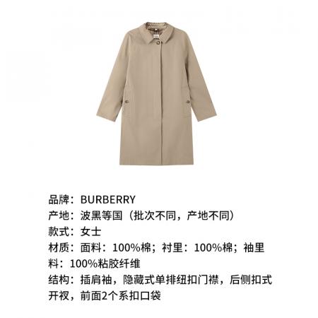自营Burberry 博柏利 【新品】 女士棉质蜂蜜色中长款卡姆登版型轻盈轻便风衣大衣外套 80763681