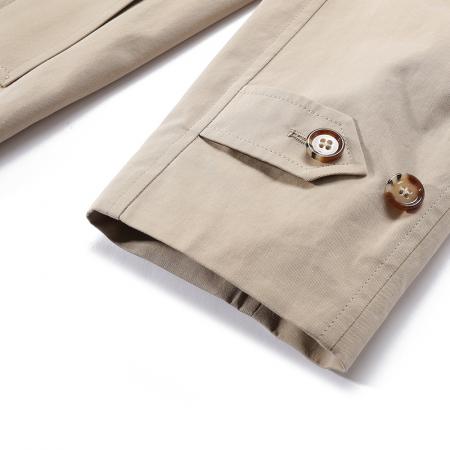 - 结构:插肩袖,隐藏式单排纽扣门襟,后侧扣式开衩,前面2个系扣口袋