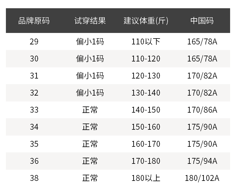 - 尺码说明