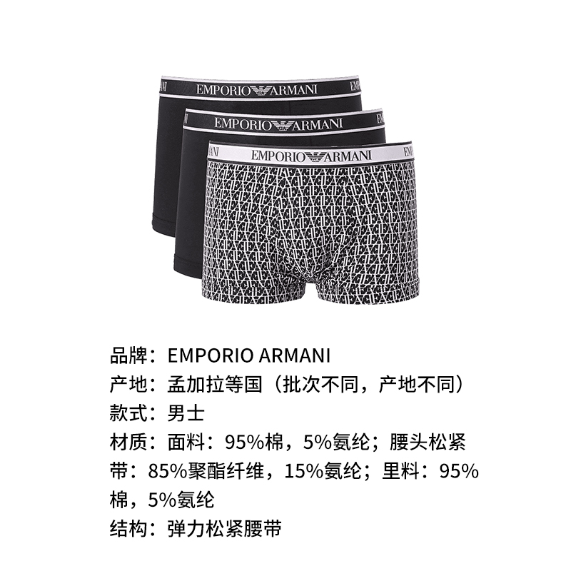 EMPORIO ARMANI平角内裤三条装个性搭配