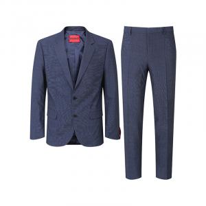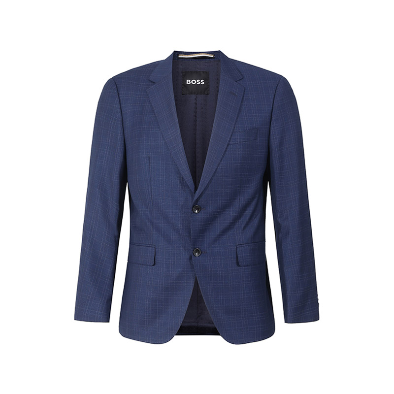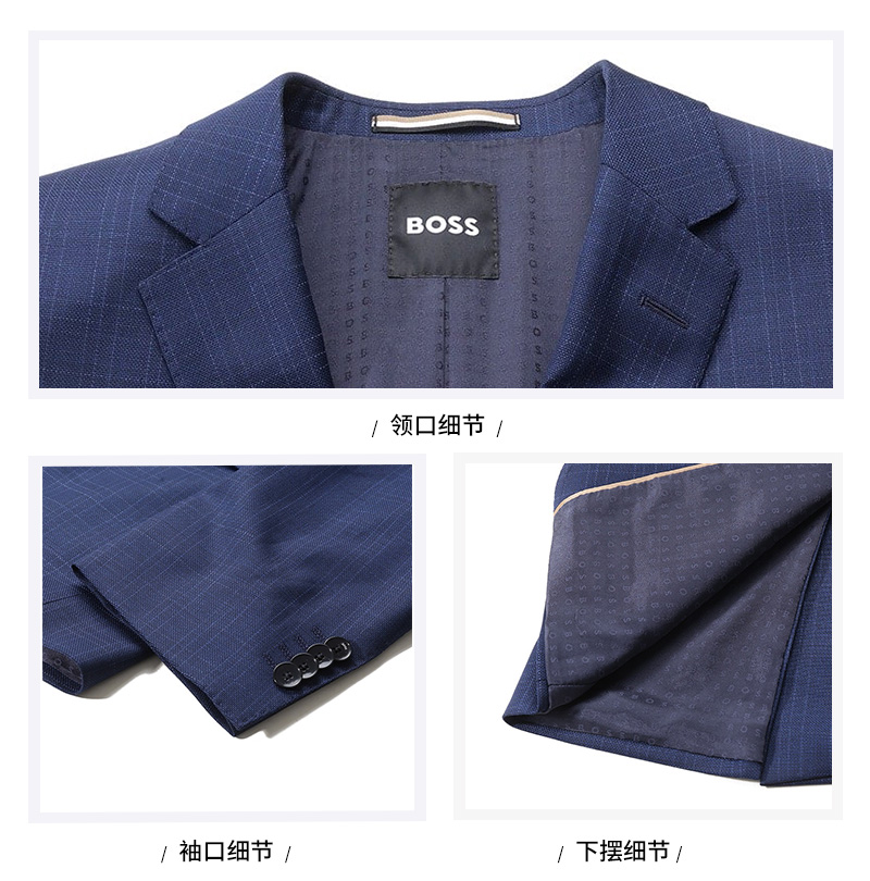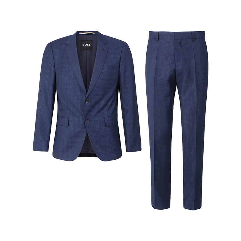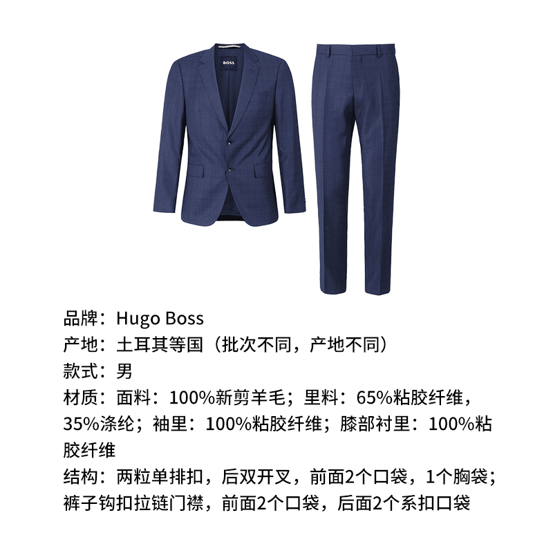自营Hugo Boss 雨果博斯 【新品】 男士black系列新剪羊毛深蓝色格纹两粒单排扣商务西装西裤长裤西服套装 50509502 404