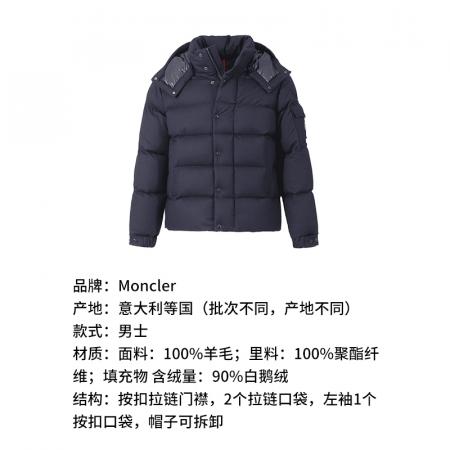 自营Moncler 盟可睐/蒙口 MONCLER 【新品】 男士深蓝色标识贴片宽松版Vezere短款鹅绒连帽羽绒服外套 J2 091 1A00157 54272 742