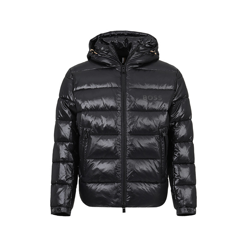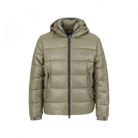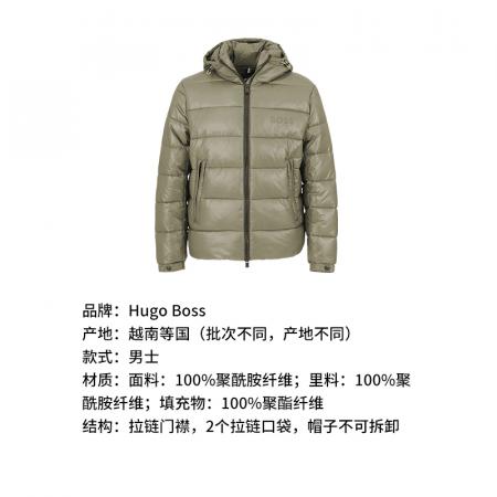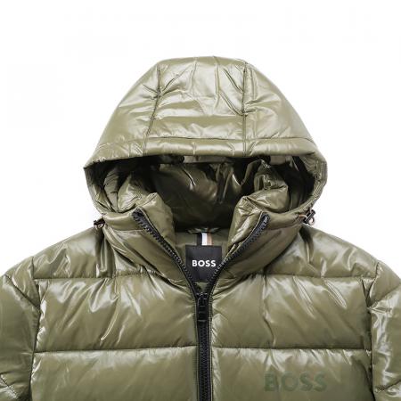 自营Hugo Boss 雨果博斯【新品】 男士black系列橄榄绿徽标胶印拉链连帽棉服上衣外套 50520200 377