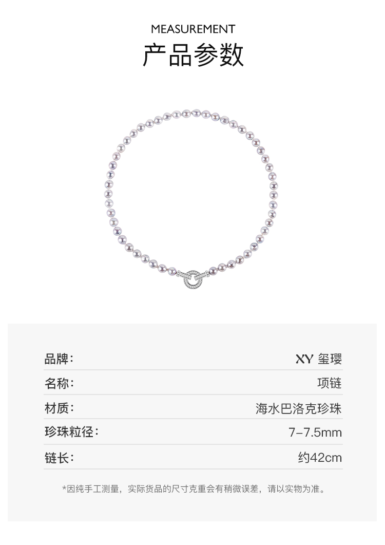 CLORIS 克劳瑞斯 天然海水巴洛克珍珠项链女7-7.5mm 毛衣链
