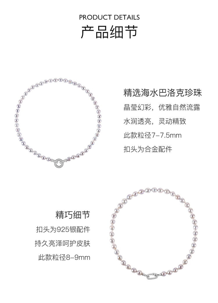 - 材质:海水巴洛克珍珠 合金