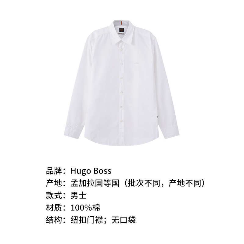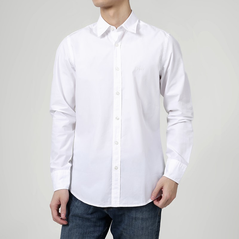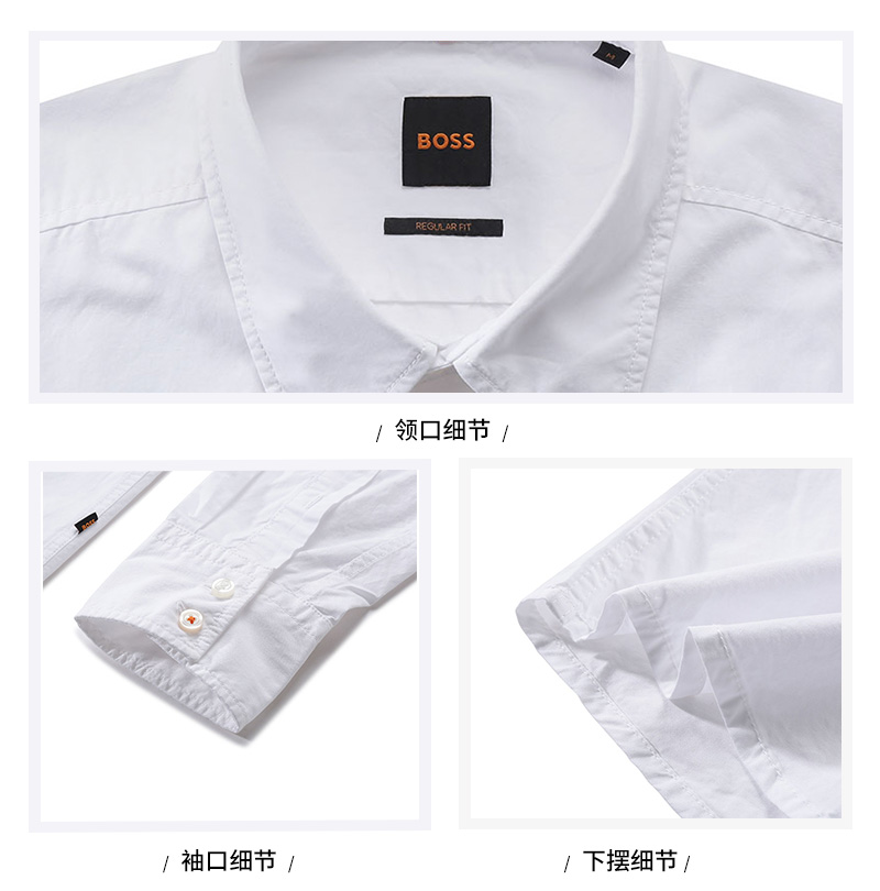 自营Hugo Boss 雨果博斯【新品】男士orange系列棉质白色小徽标刺绣休闲长袖衬衫 50518304 100