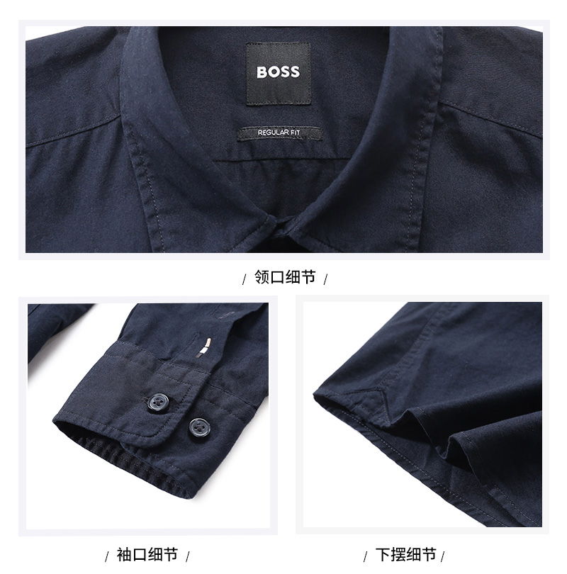 自营Hugo Boss 雨果博斯【新品】男士black系列棉质深蓝小徽标刺绣休闲长袖衬衫 50520284 404