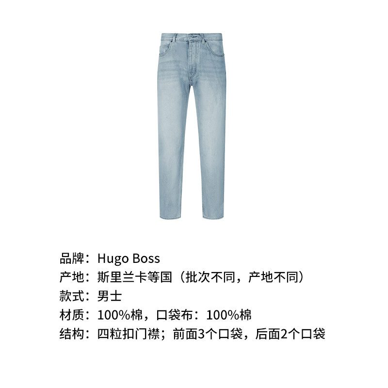自营Hugo Boss 雨果博斯【新品】男士Hugo系列棉质浅蓝色四粒扣门襟复古牛仔裤长裤 50529225 448