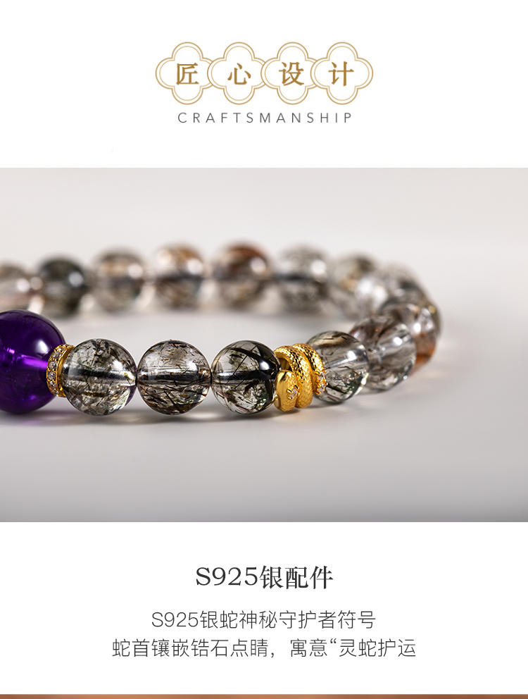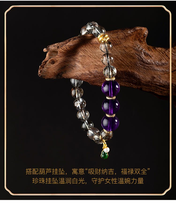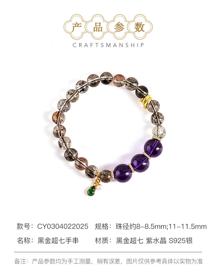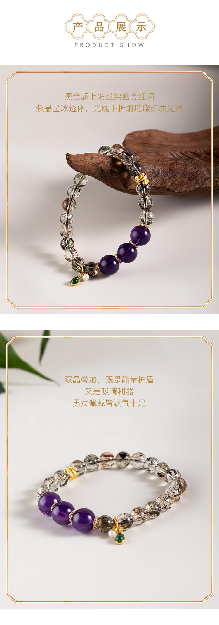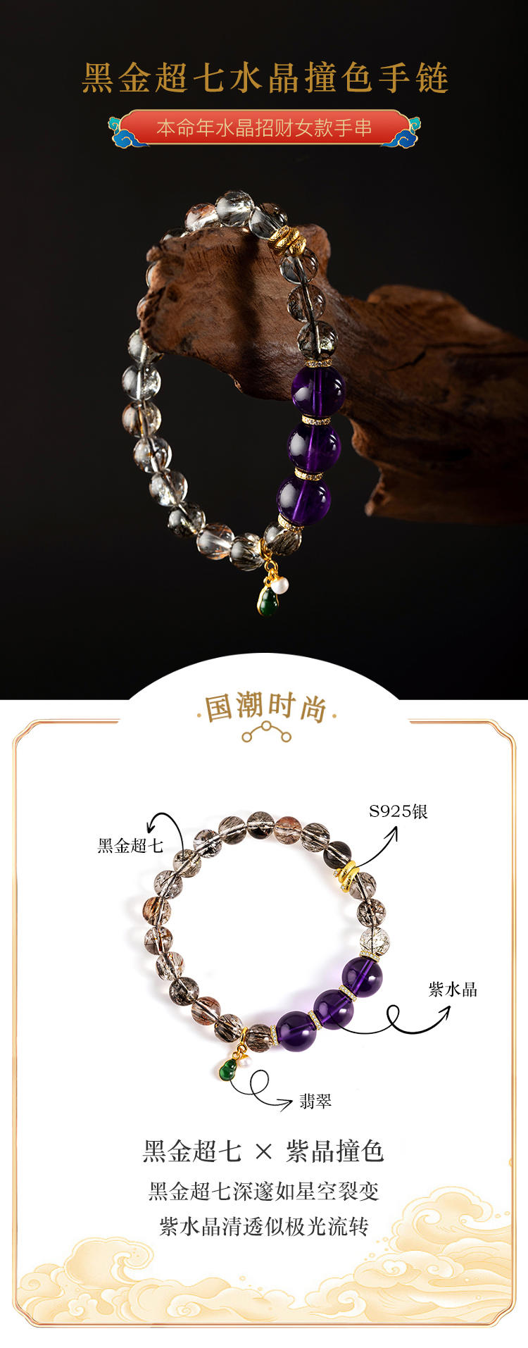 CLORIS 克劳瑞斯 黑金超七水晶撞色手链 蛇年本命年水晶招财女款手串