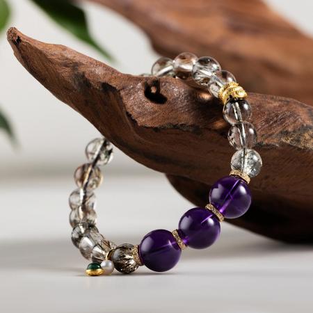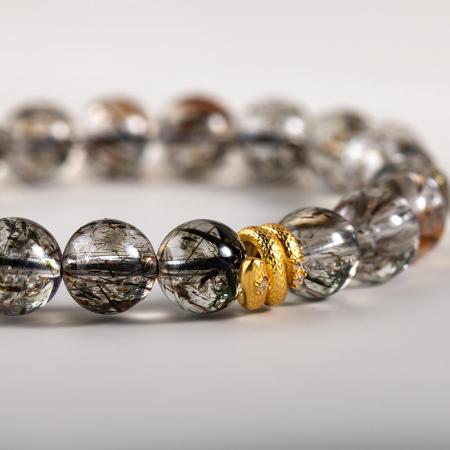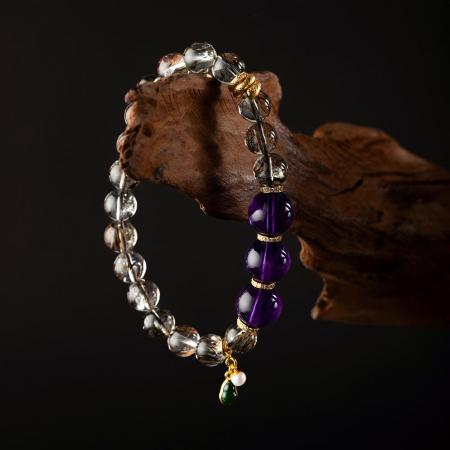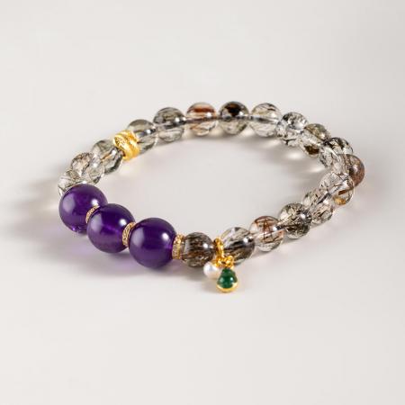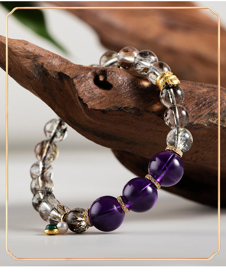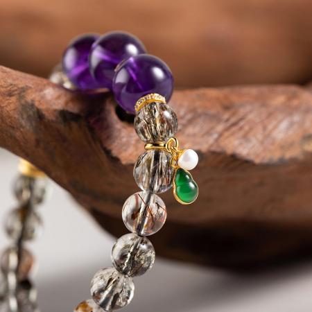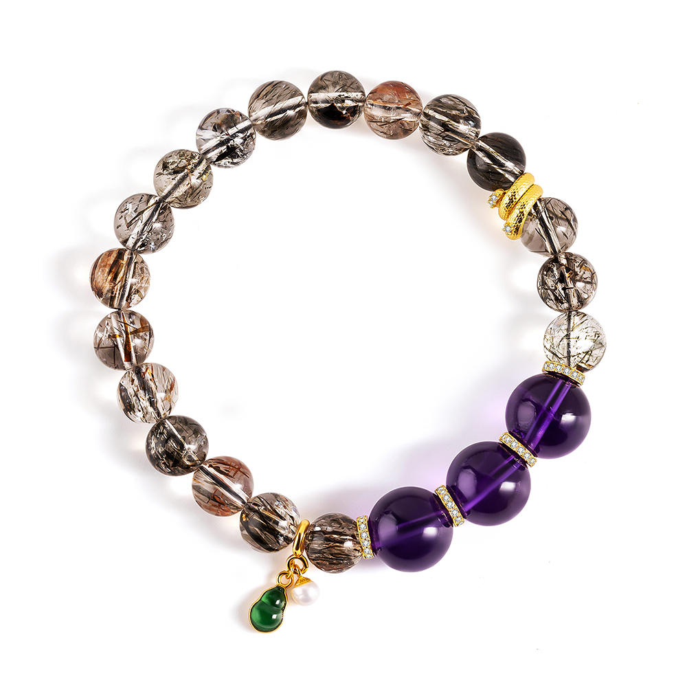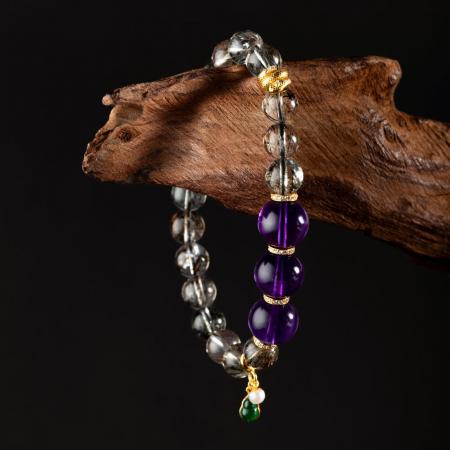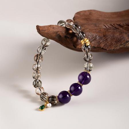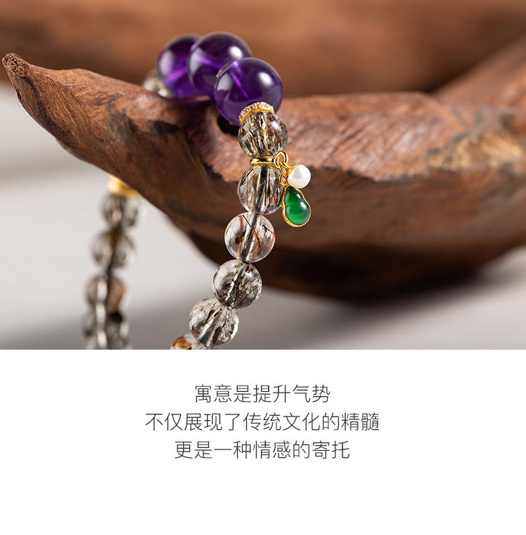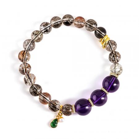 CLORIS 克劳瑞斯 黑金超七水晶撞色手链 蛇年本命年水晶招财女款手串