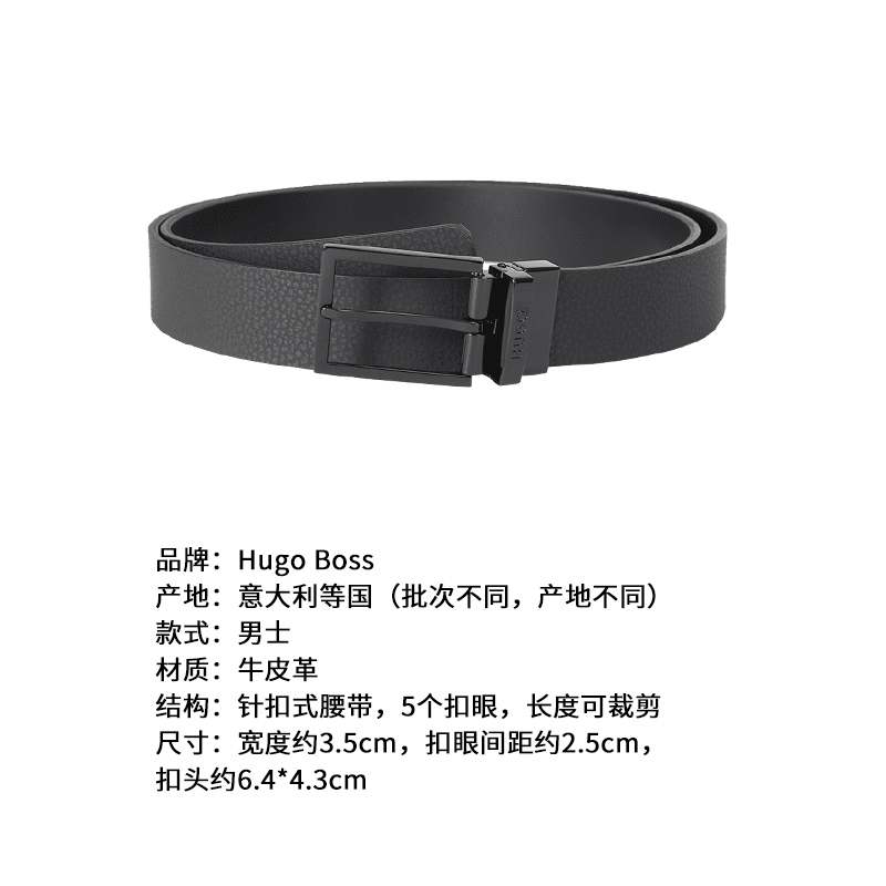 自营Hugo Boss 雨果博斯【新品】男士HUGO系列牛皮革黑色可裁剪双面旋转皮带腰带3.5cm 50522892 001