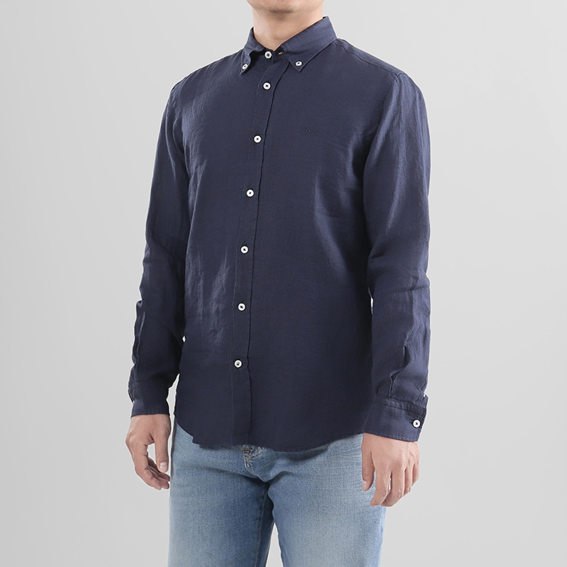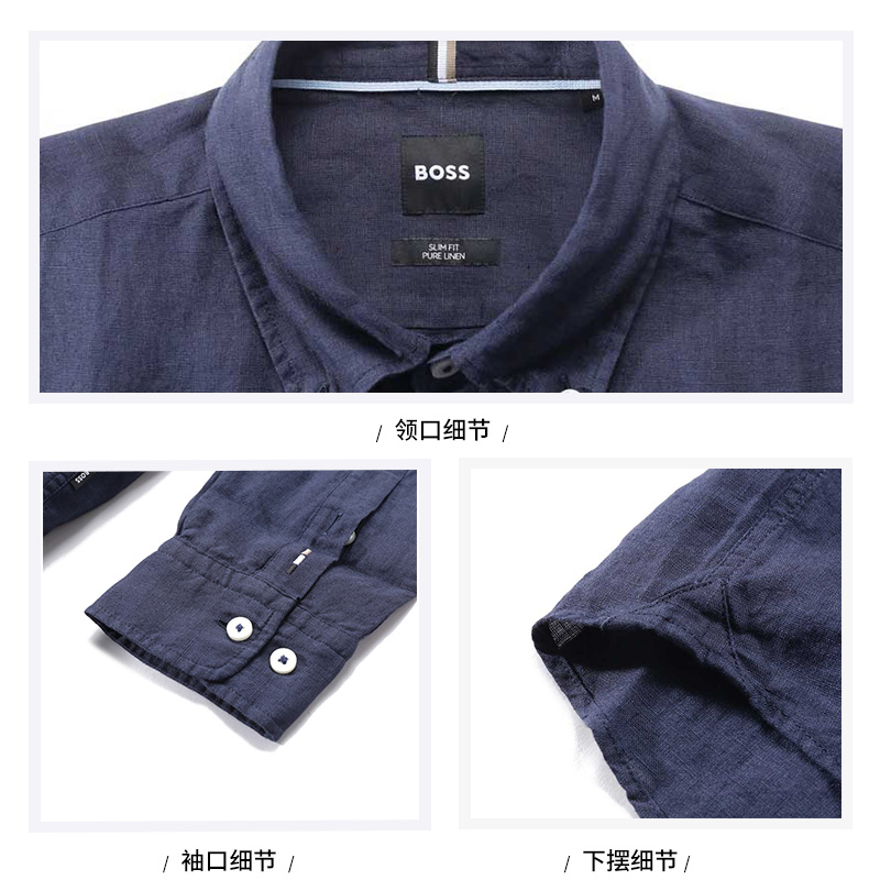 自营Hugo Boss 雨果博斯【新品】男士black系列深蓝色小徽标刺绣长袖衬衫 50520283 404