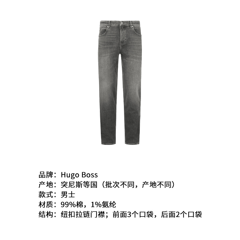 自营Hugo Boss 雨果博斯【新品】男士black系列棉质灰色复古牛仔裤长裤 50533154 014