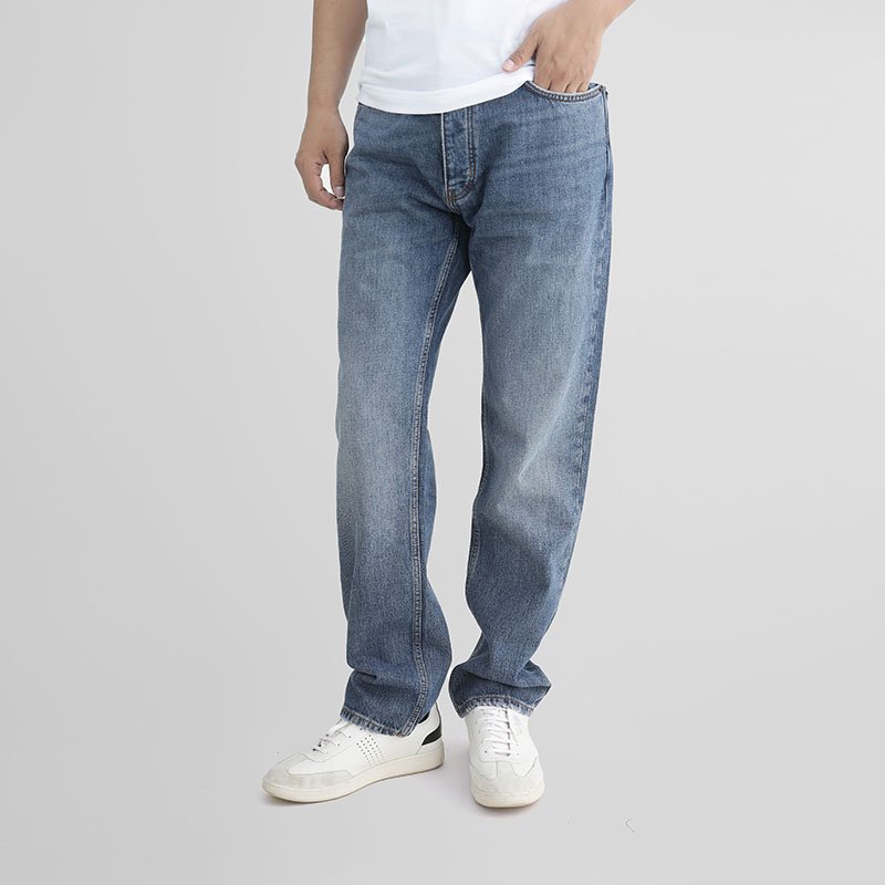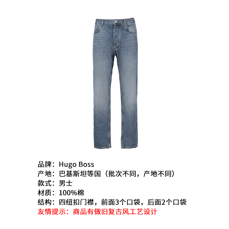自营Hugo Boss 雨果博斯【新品】男士HUGO系列棉质中蓝色JONAH四纽扣门襟直筒磨毛做旧牛仔裤休闲长裤 50511497 416