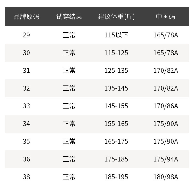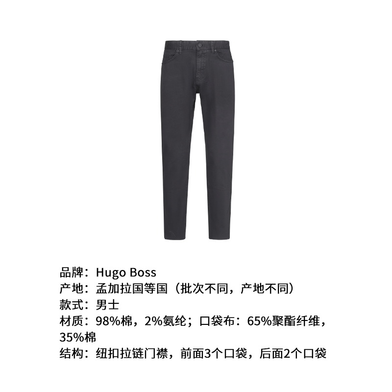 - 材质:98%棉,2%氨纶;口袋布:65%聚酯纤维,35%棉