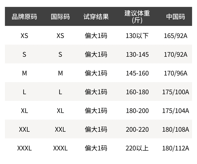- 尺码说明