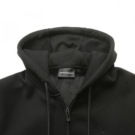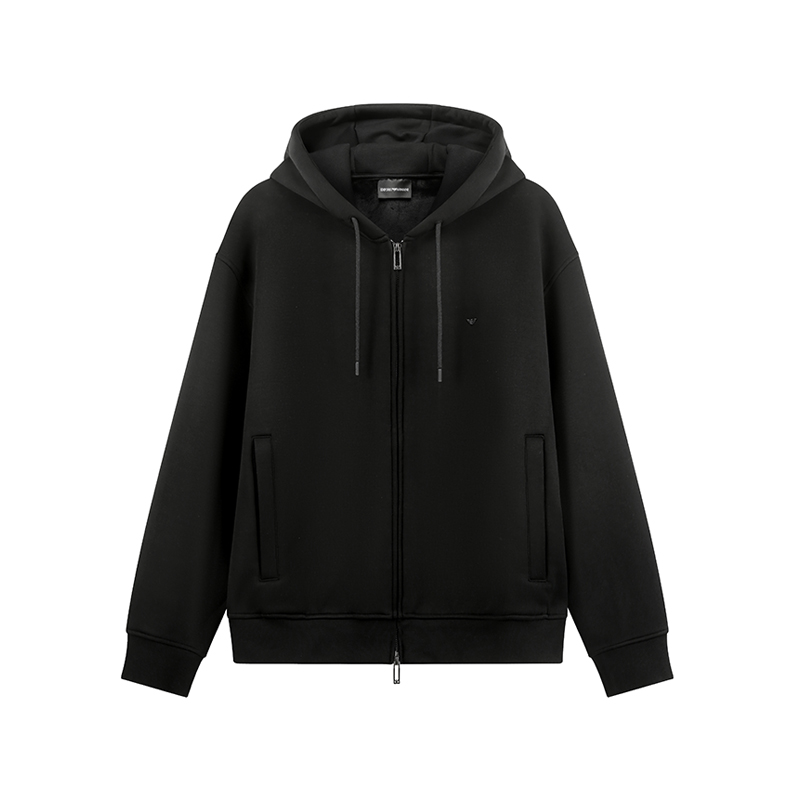 自营Emporio Armani 阿玛尼 新品 男士黑色小鹰标刺绣重磅加绒款连帽拉链卫衣开衫运动衫外套 6D1M90 1JOTZ 0999