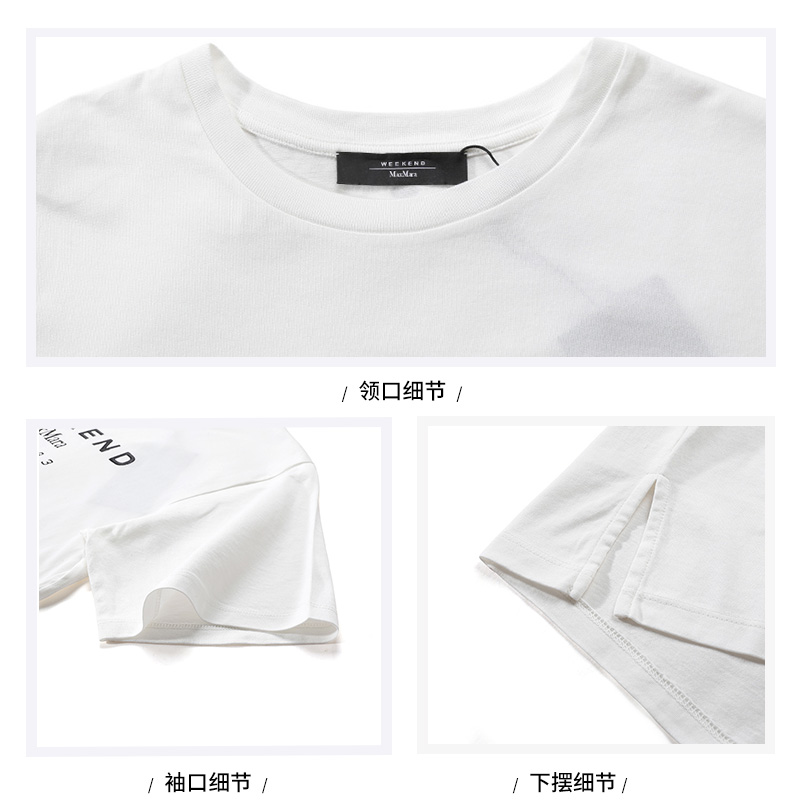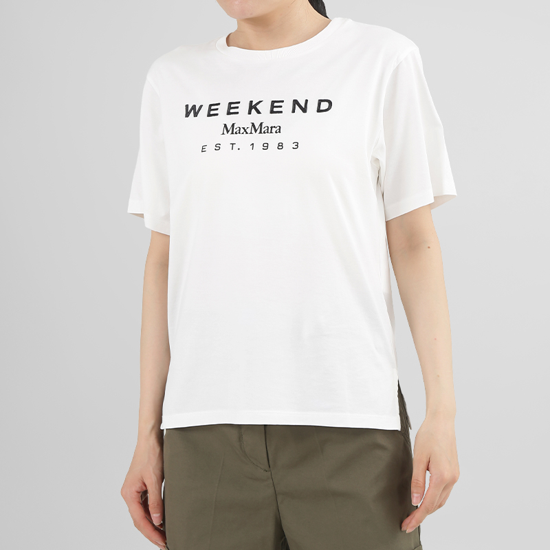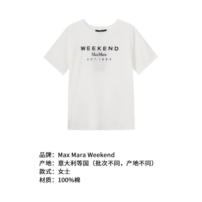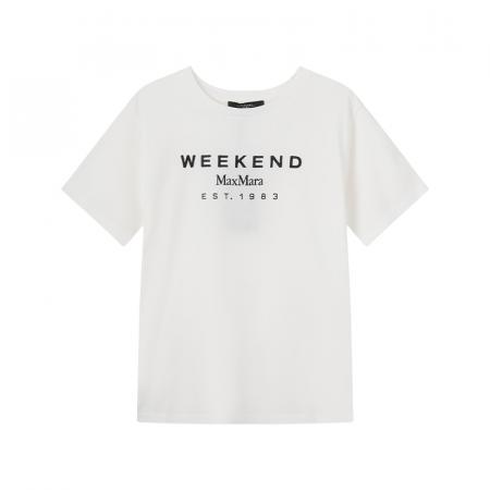 自营Weekend MaxMara 麦丝玛拉【新品】女士棉质白色LOGO标识圆领短袖T恤 CABINA 002 15971041