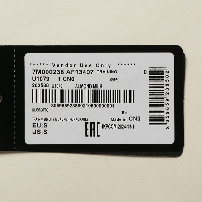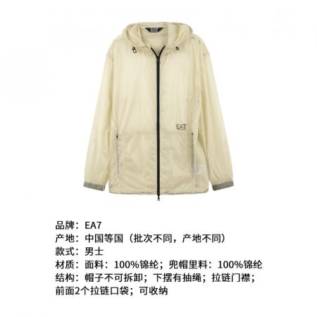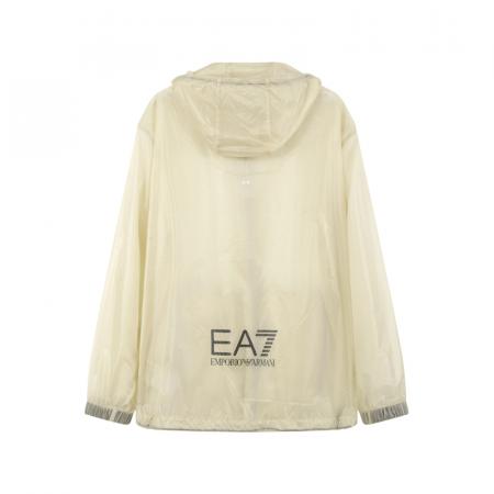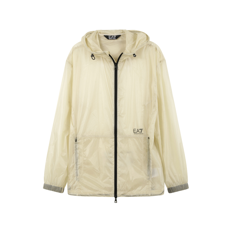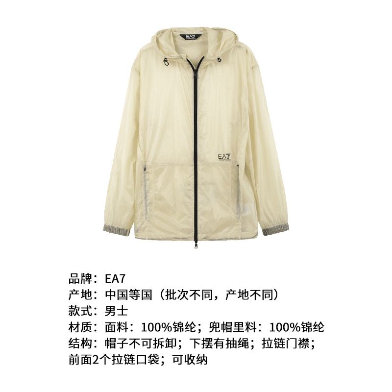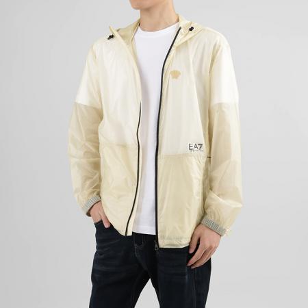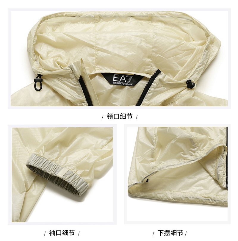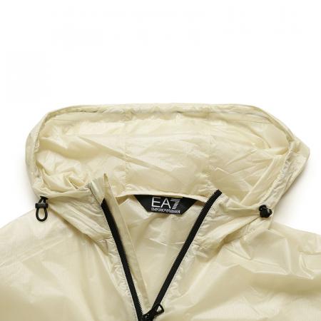 自营EA7 阿玛尼 新品 男士杏仁奶色徽标图案可收纳轻薄款连帽拉链夹克皮肤衣上衣外套 7M000238 AF13407 U1079