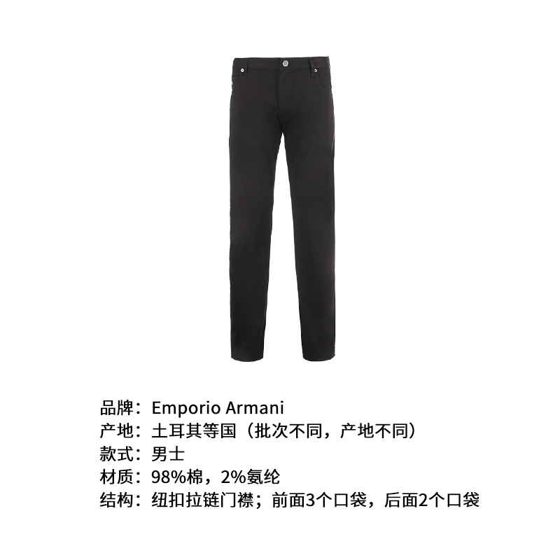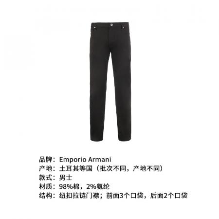 自营Emporio Armani 阿玛尼 新品 男士棉质黑色牛仔裤长裤 EM001370 AF14123 UC001