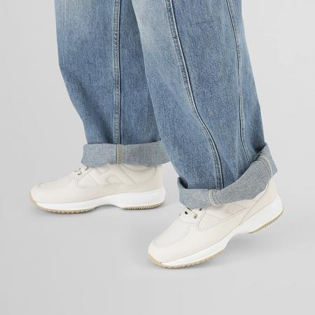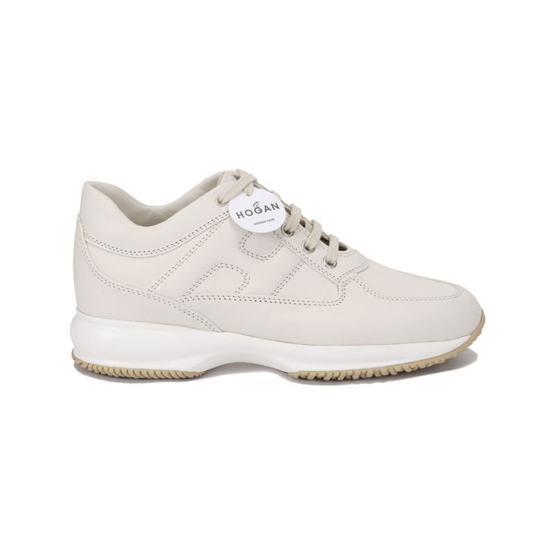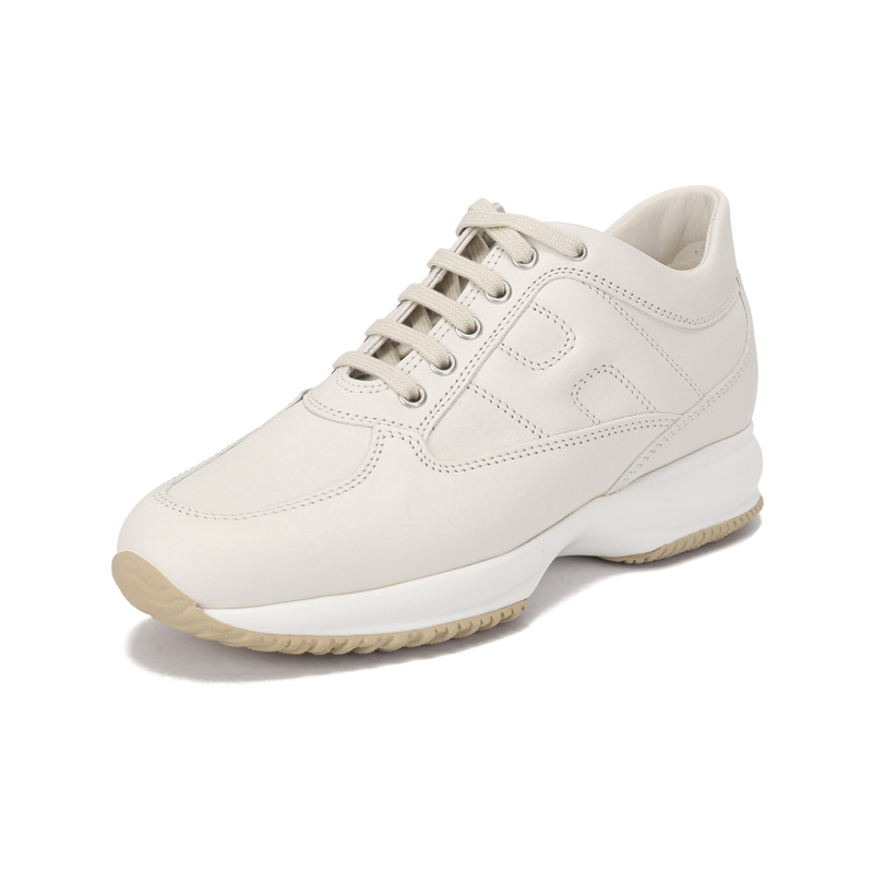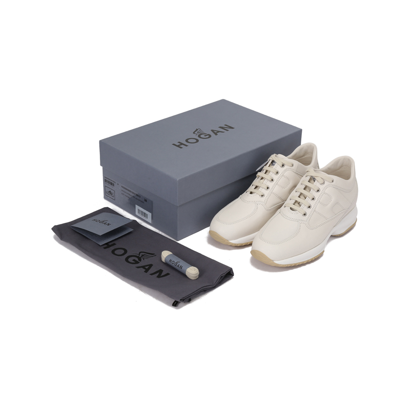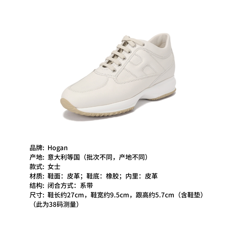 自营Hogan 新品 女士Interactive系列皮革象牙白H字母厚底系带增高小白鞋休闲运动鞋跟高5.7cm HXW00N00010KXTB013