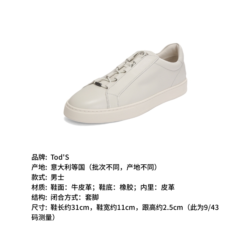 自营Tod'S 托德斯 新品 男士牛皮革本白色小白鞋运动休闲鞋 XXM04L0JF40JUSB009