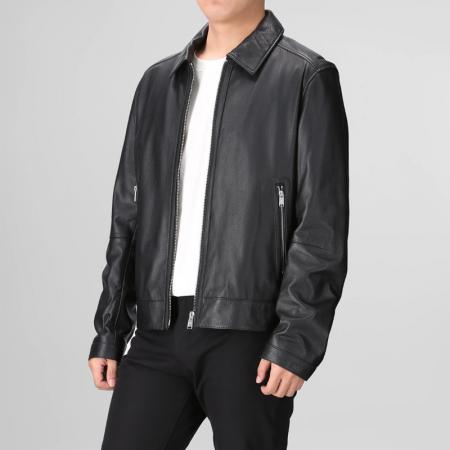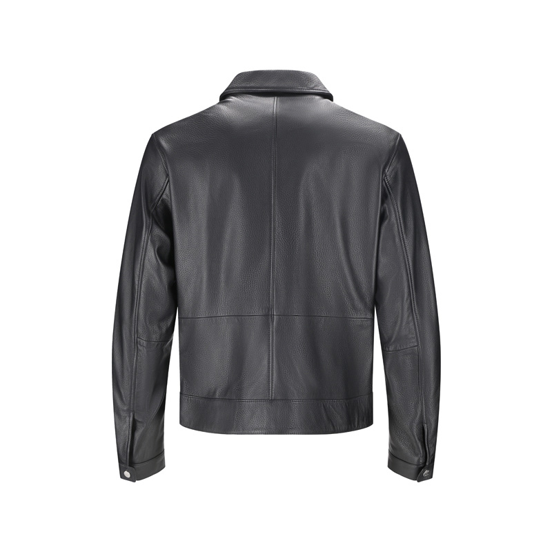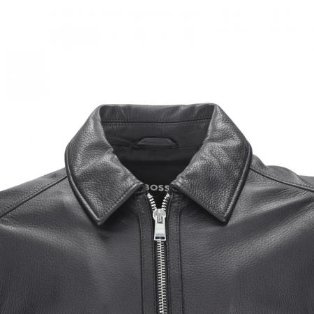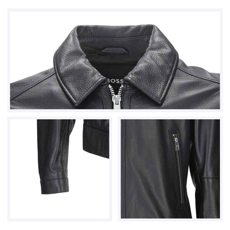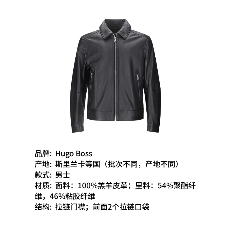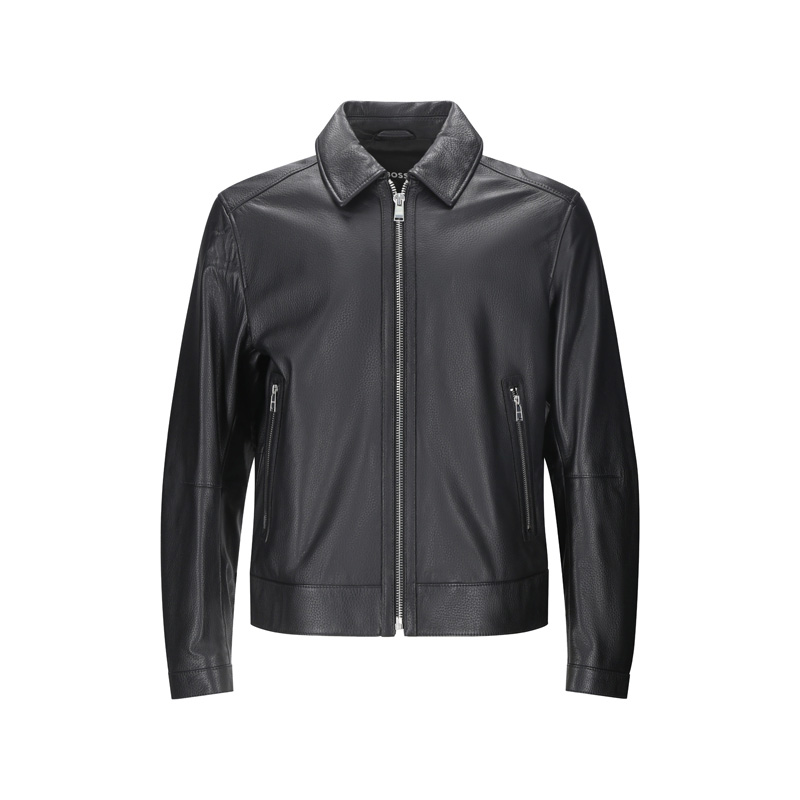自营Hugo Boss 雨果博斯 25秋冬新品 男士black系列羔羊皮革黑色皮衣皮夹克上衣外套 50543214 001