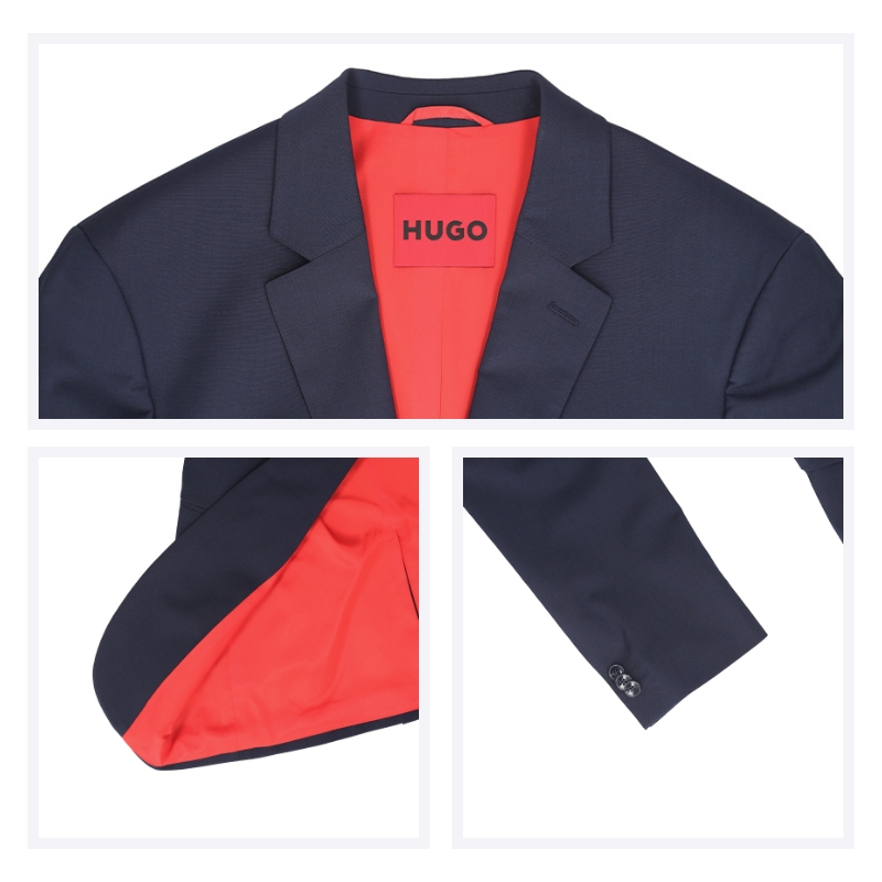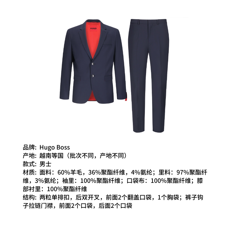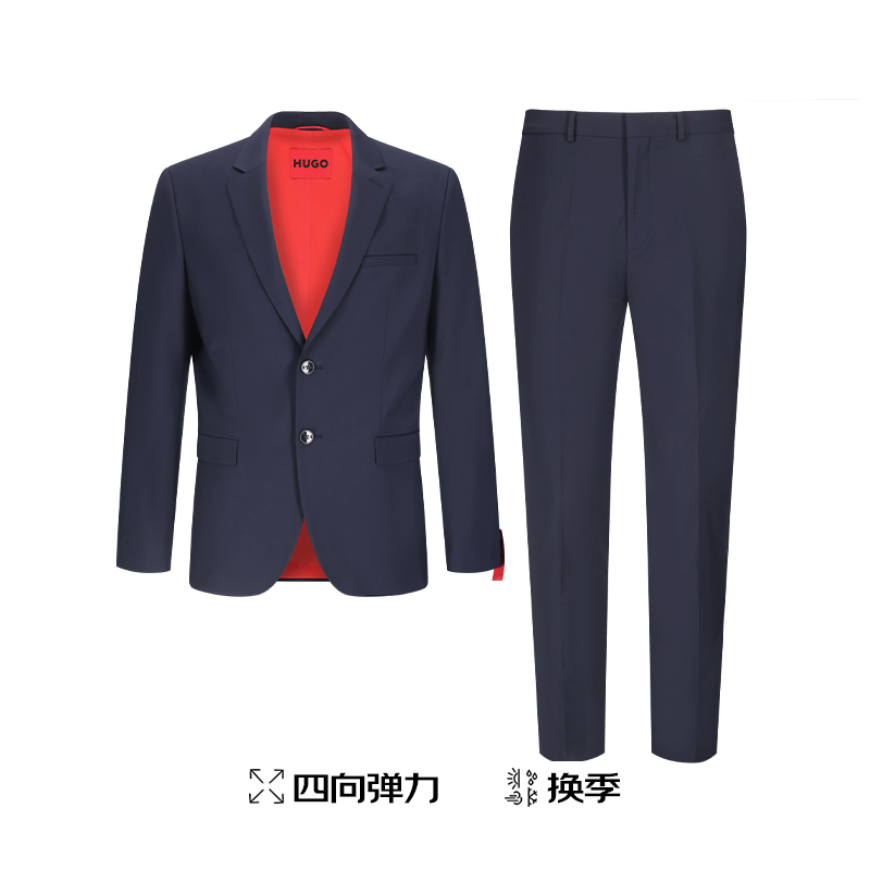 自营Hugo Boss 雨果博斯 25秋冬新品 男士HUGO系列羊毛/混纺深蓝色两粒单排扣西装西裤长裤西服套装 50540141 405