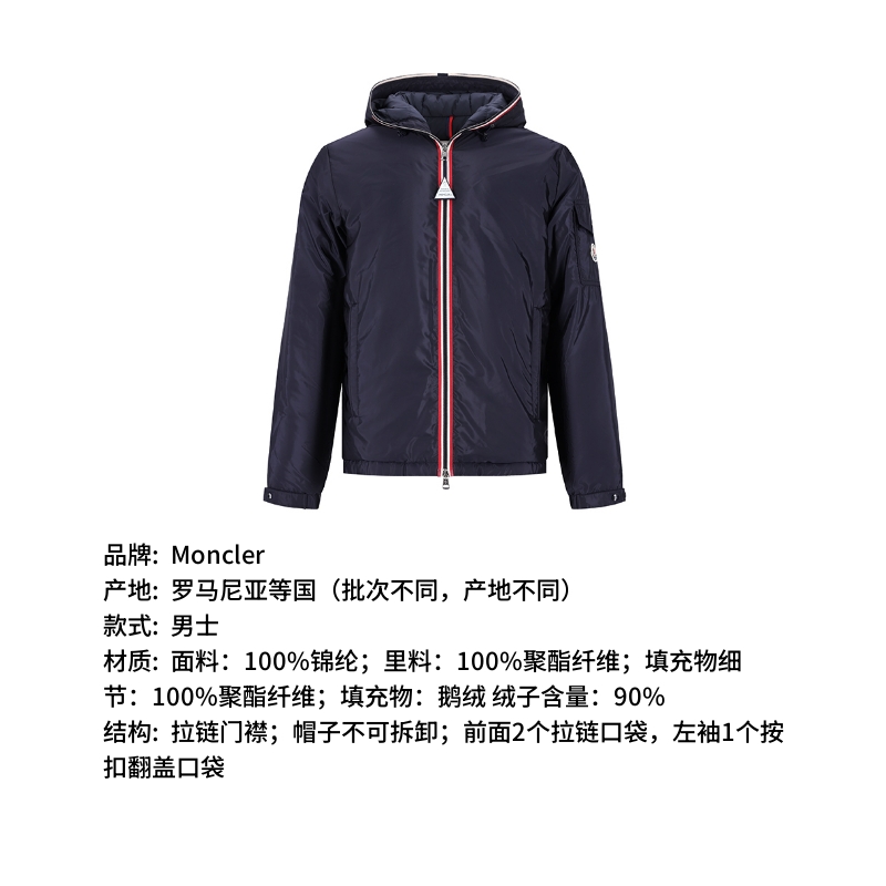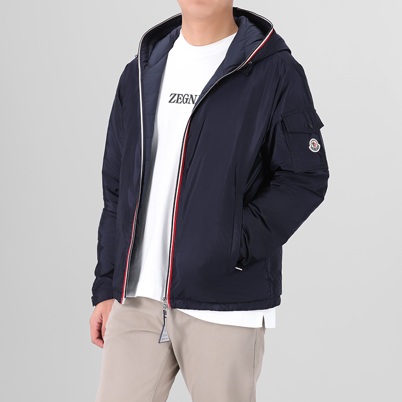 自营Moncler 盟可睐/蒙口 新品 男士深蓝色小徽标贴片Evettes宽松版薄款鹅绒连帽羽绒服夹克上衣外套 K1 091 1A00024 539ZD 778