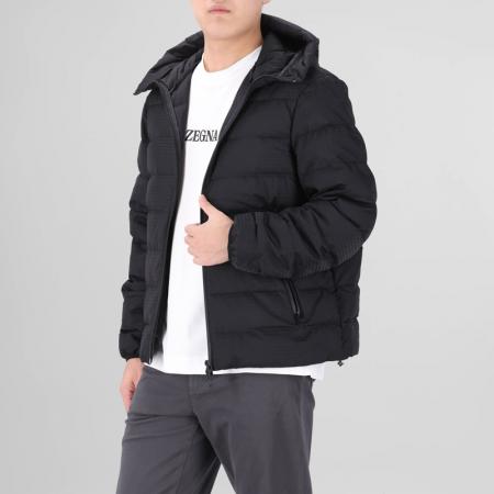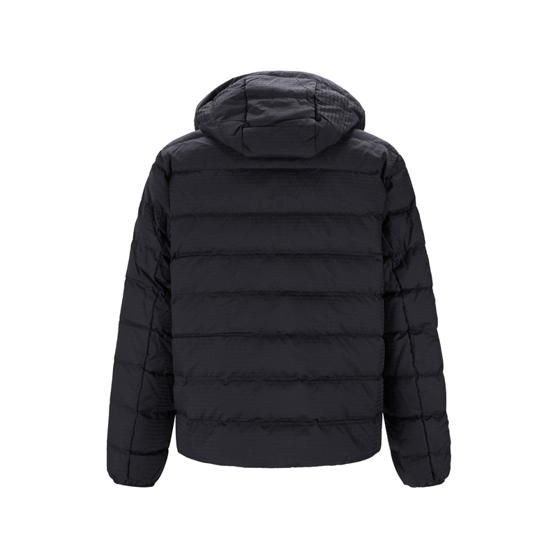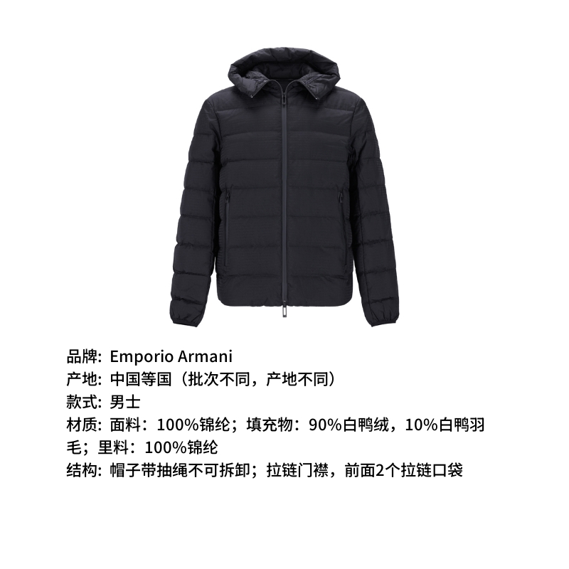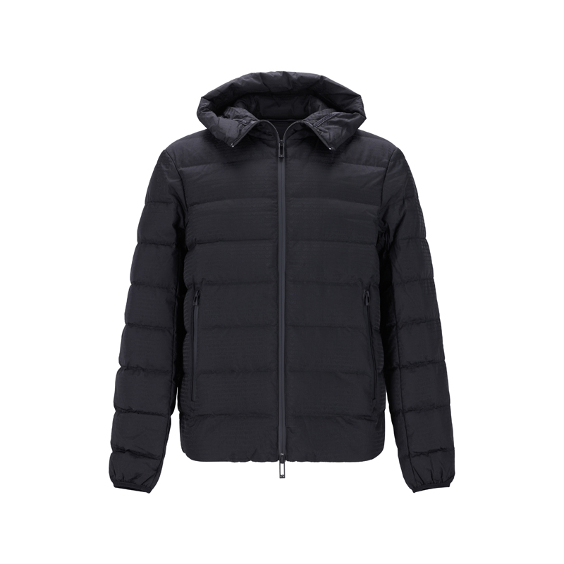 自营Emporio Armani 阿玛尼 新品 男士黑色通体LOGO提花薄款白鸭绒连帽羽绒服外套 EM003043 AF15384 UC001